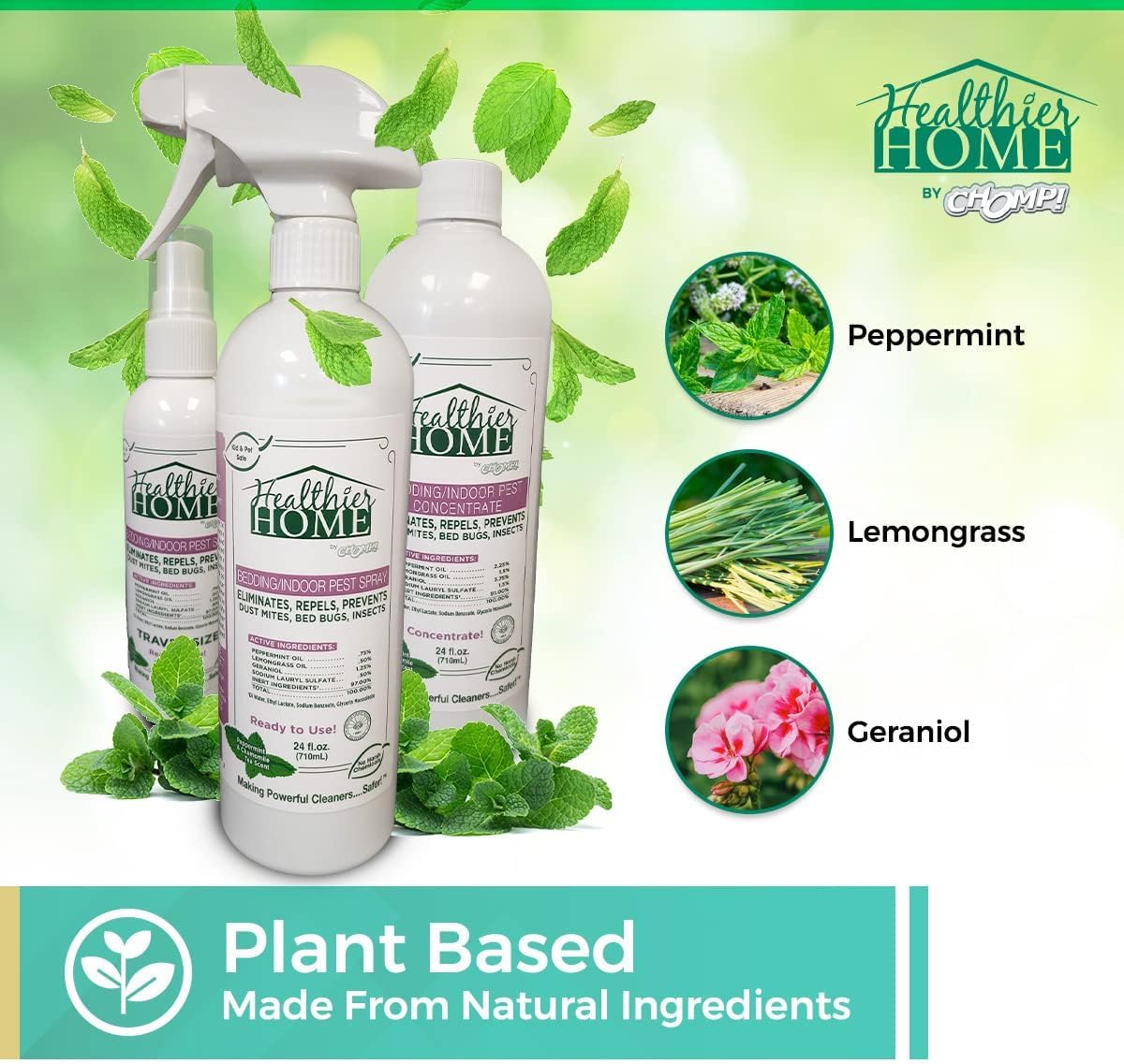 CHOMP! Travel Size Bed Bug & Insect Repellent, Natural, TSA Approved Indoor Pest Control Spray for Travel & Home, Plant-Based Dust Mite, Ant, Spider, Fly Killer, Peppermint Scent, 3.4 Fl Oz