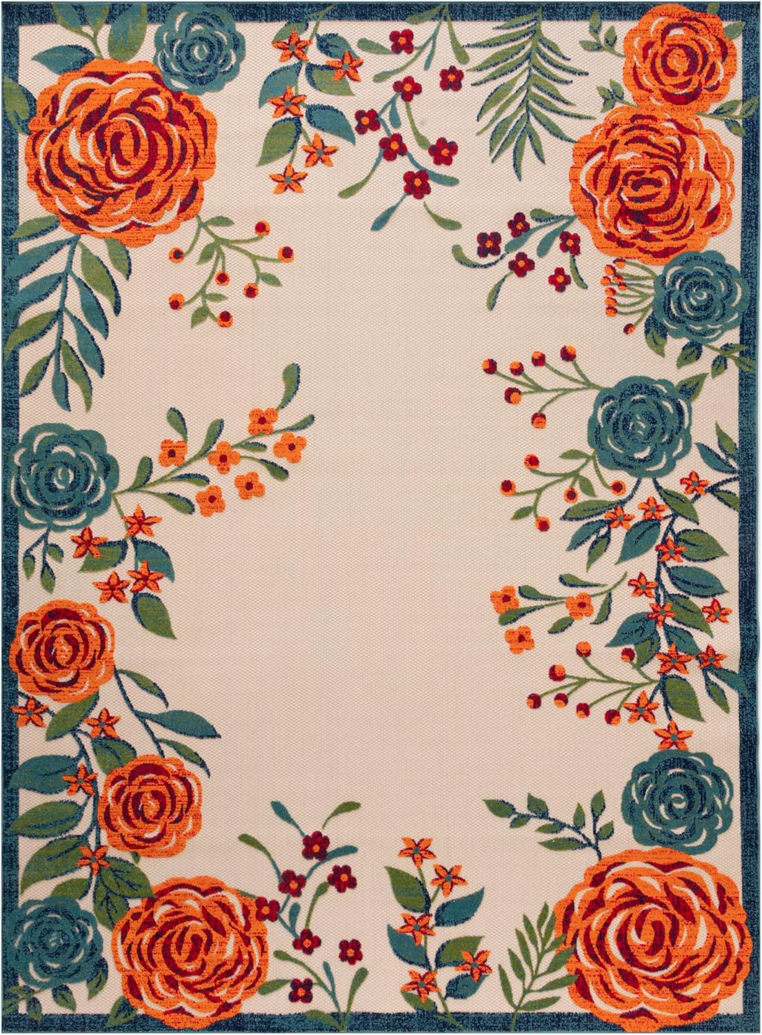 - EYE-CATCHING PATTERN: This floral outdoor rug is flatwoven with a subtly raised cut pile for a distinctive look and soft texture.