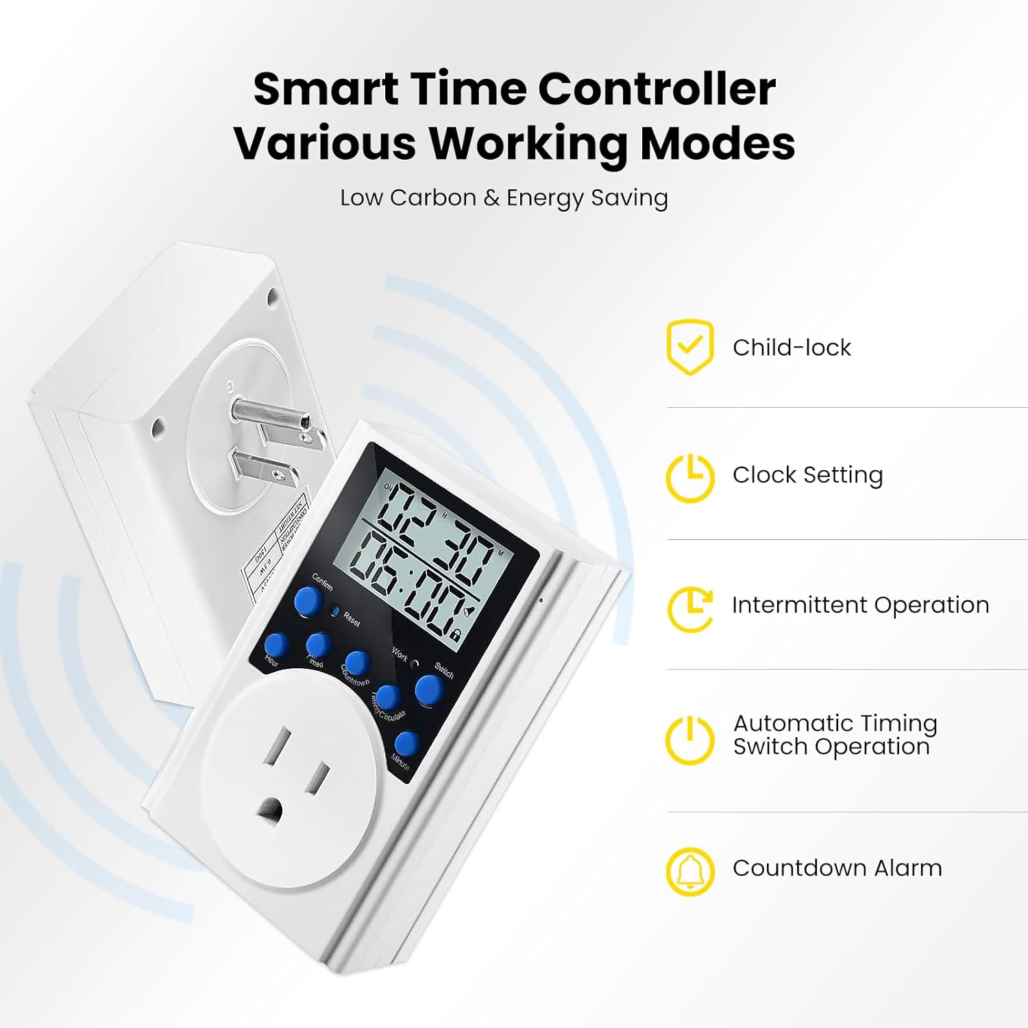 - Multiple Working Modes β Various timing functions could be set for energy efficient via the smart time controller such as automatic timing switch operation, countdown timer alarm, intermittent duty for the pond air pump aerator outdoor. The pond air pump could keep working without using the timer controller by manually turning on the switch after power on