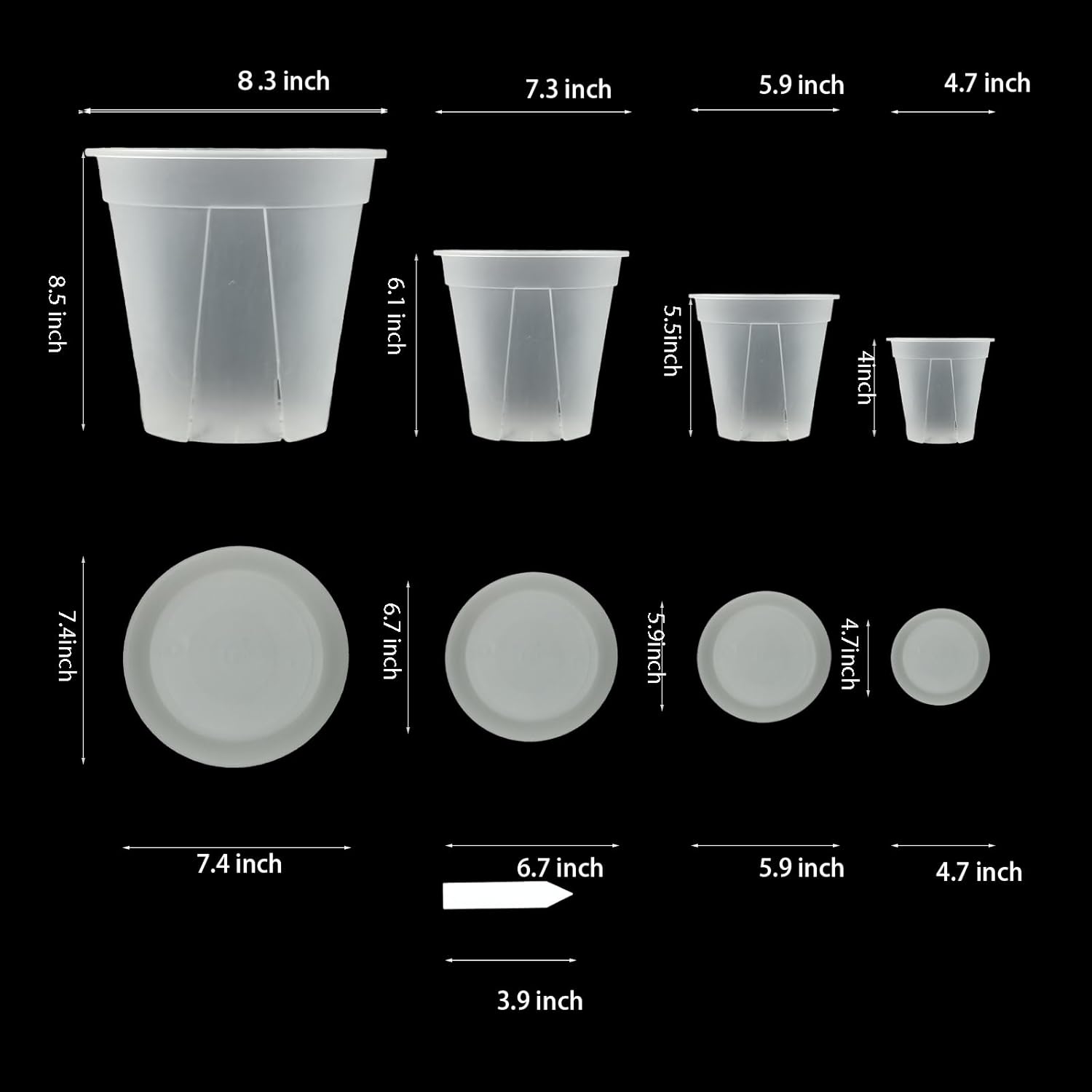 - Good assorted sizes: 4 different sizes to accommodate the growth of different plants from plant starter pots to large nursery pots. The package contained 5 inch / 6 inch clear nursery pots and 7 inch / 8 inch clear nursery pots.