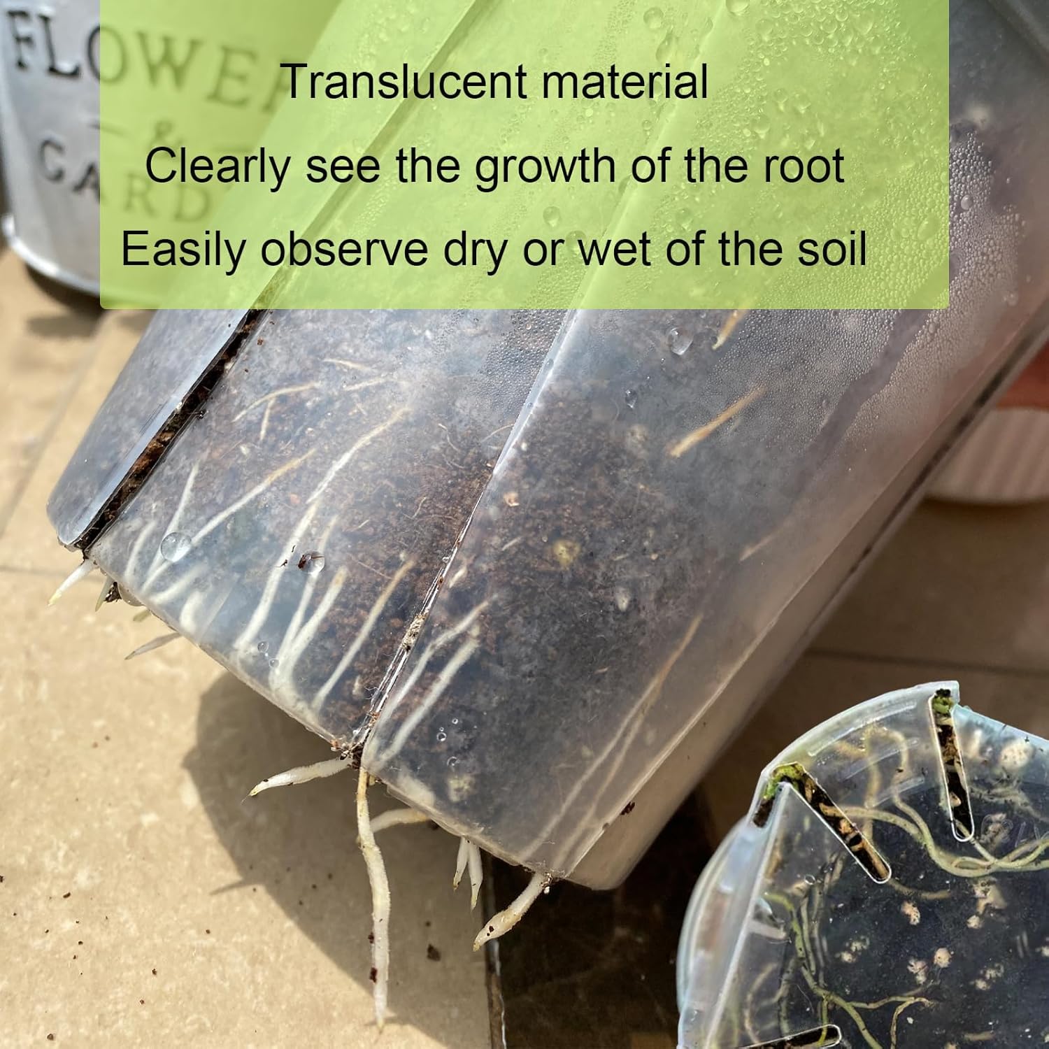 - See root growth : clear nursery pots allow you easy to see the root growth and moisture of the soil. Effectively avoid over-watering and make clear plant pots a good fit for new, or neglectful plant parents.