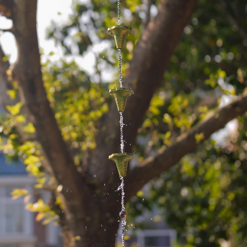 - Ideal Choice: The uniquely designed rain chains for gutters not only guides water from the eaves to fall but also decorates the house well, adding a unique and elegant artistic atmosphere to the house, making it pleasing to the eye. The cute rain chain given to housewarming friends, parents, or grandparents, will be a very thoughtful choice