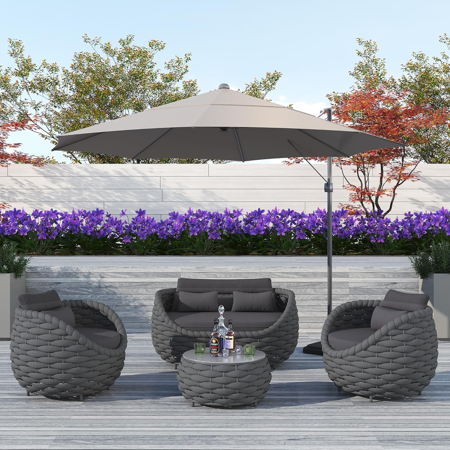 - Soft & Comfortable: Outdoor patio furniture has 3.7" thick seat cushions that are upholstered by water-resistant and UV-protective polyester fabric for ergonomic optimal comfort.Cover of cushions can be removeable and washable by invisible zipper as well