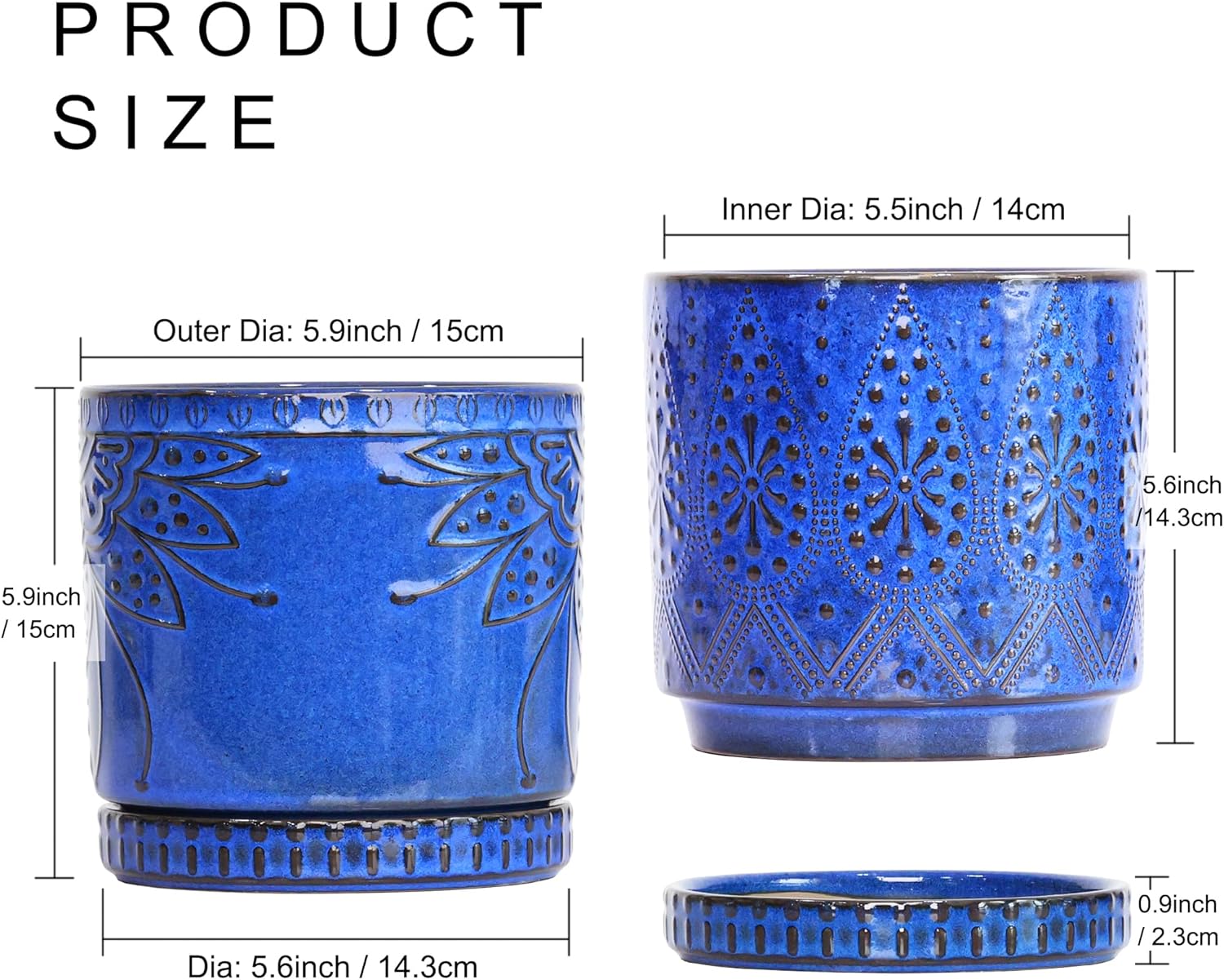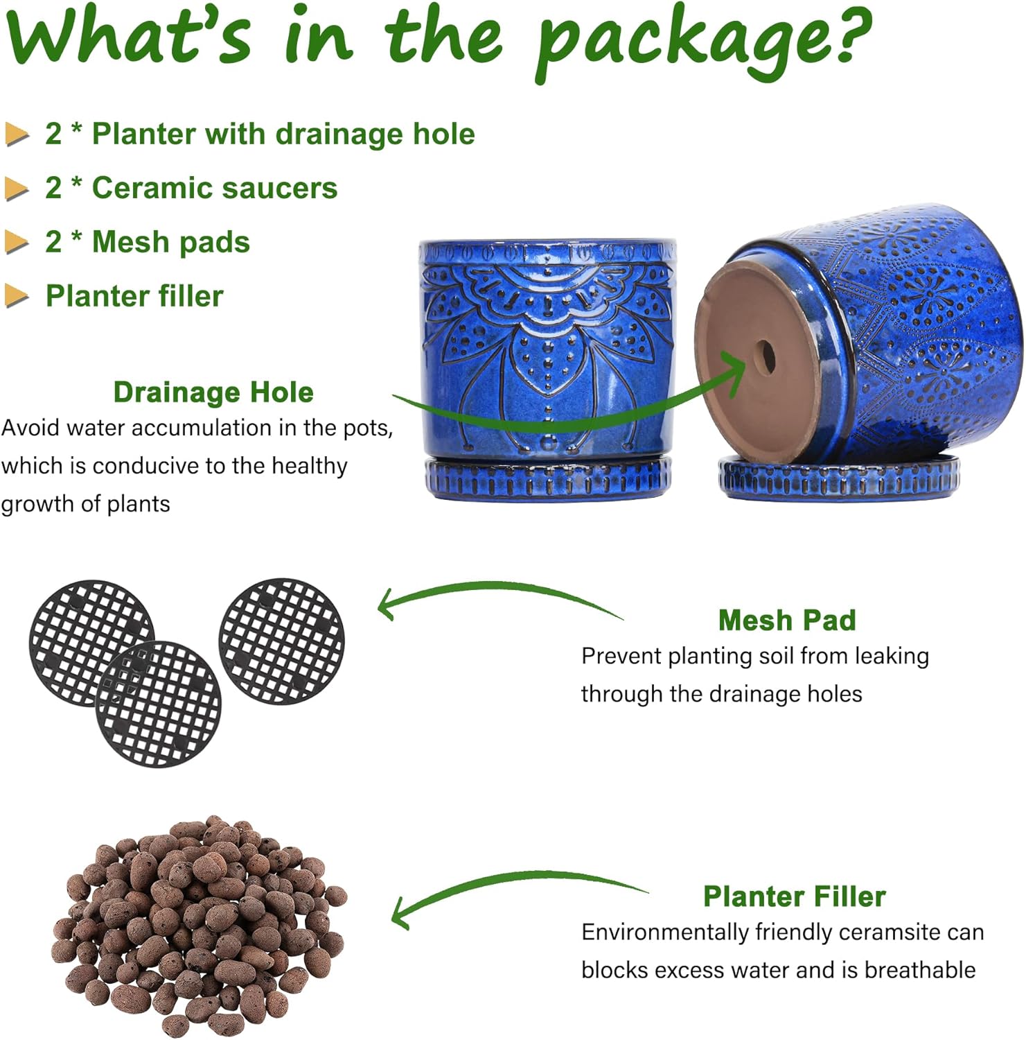 - Size & Package : 6 Inches set of 2. Package: contains 2 ceramic flower pots, 2 ceramic saucers and 2 mesh pads(NOT INCLUDE PLANTS)