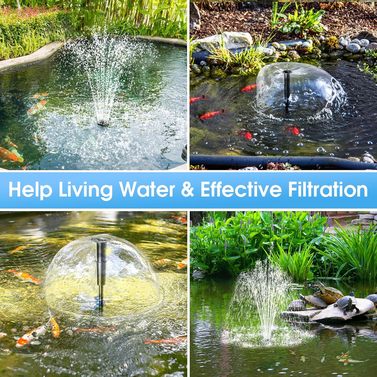 - ⛲【Built-in Pond Pump & Fountain Kit】Our filter box includes 660 GPH energy efficient & low noise water pump which suitable for ponds of 1180 gallons. Also includes a fountain kit with 3 waterspray nozzles that creates a beautiful display, while adding oxygen to pond water.