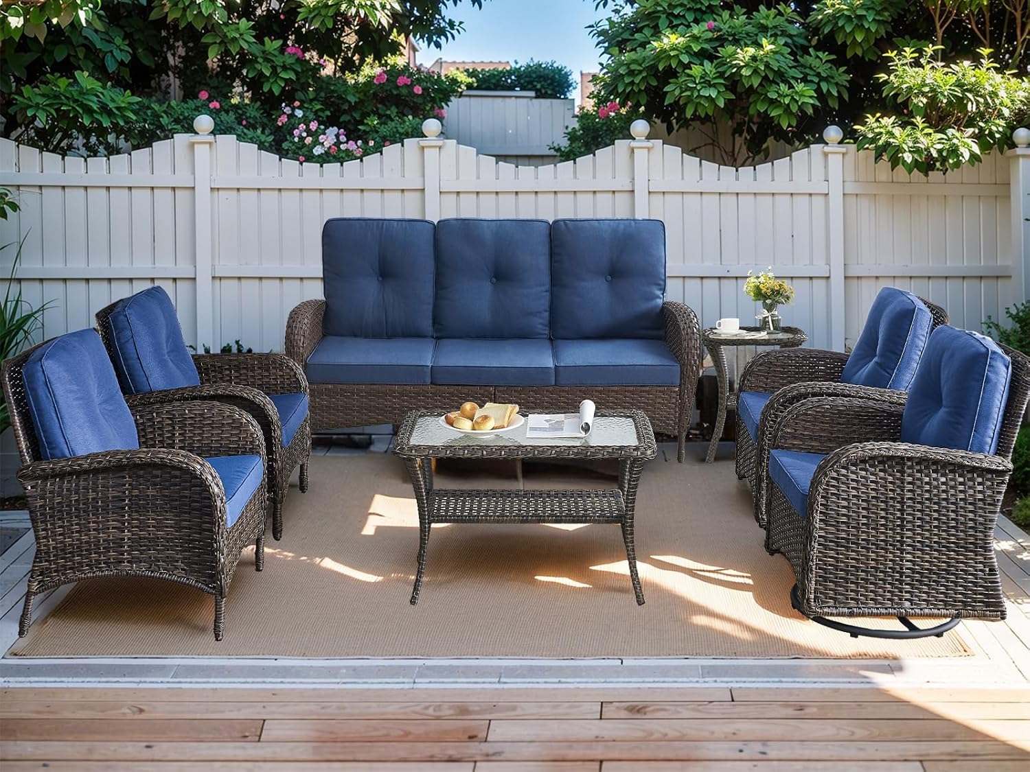 - Multi combination and function:This series of outdoor furniture set includes a variety of combinations, including functions such as swivel and glider chairs,rocking chairs,glider loveseat,suitable for a variety of scenarios,garden,balcony,deck,patio,porch,poolside,yard,corridors,sunrooms,etc.