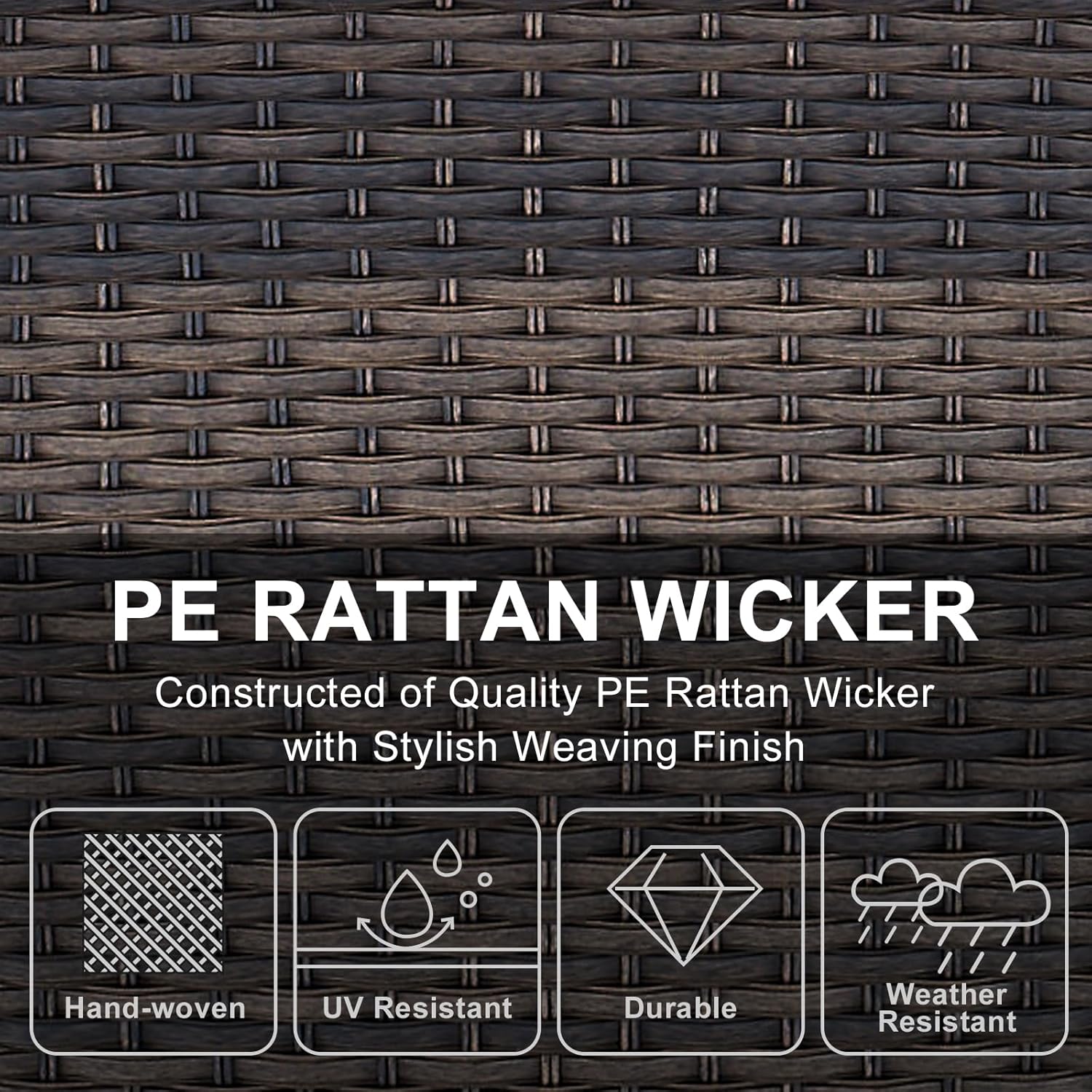 - Durable and Sturdy:Crafted with a powder-coated steel frame, these weather-resistant UV protection pieces are wrapped in hand-woven PE wicker to make this outdoor furniture set durable and sturdy.