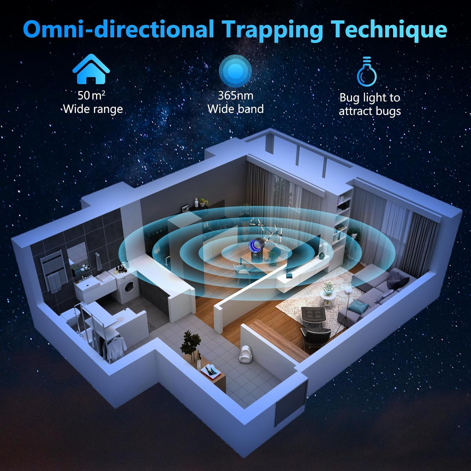 - Strong Suction: Fly traps indoor for home is equipped with bug lights that emit 365-395NM wavelength light, which is strongly attractive to insects with powerful suction. The light of the gnat trap is used to attract the flying insects, with the sticky glue board, so that they cannot escape.