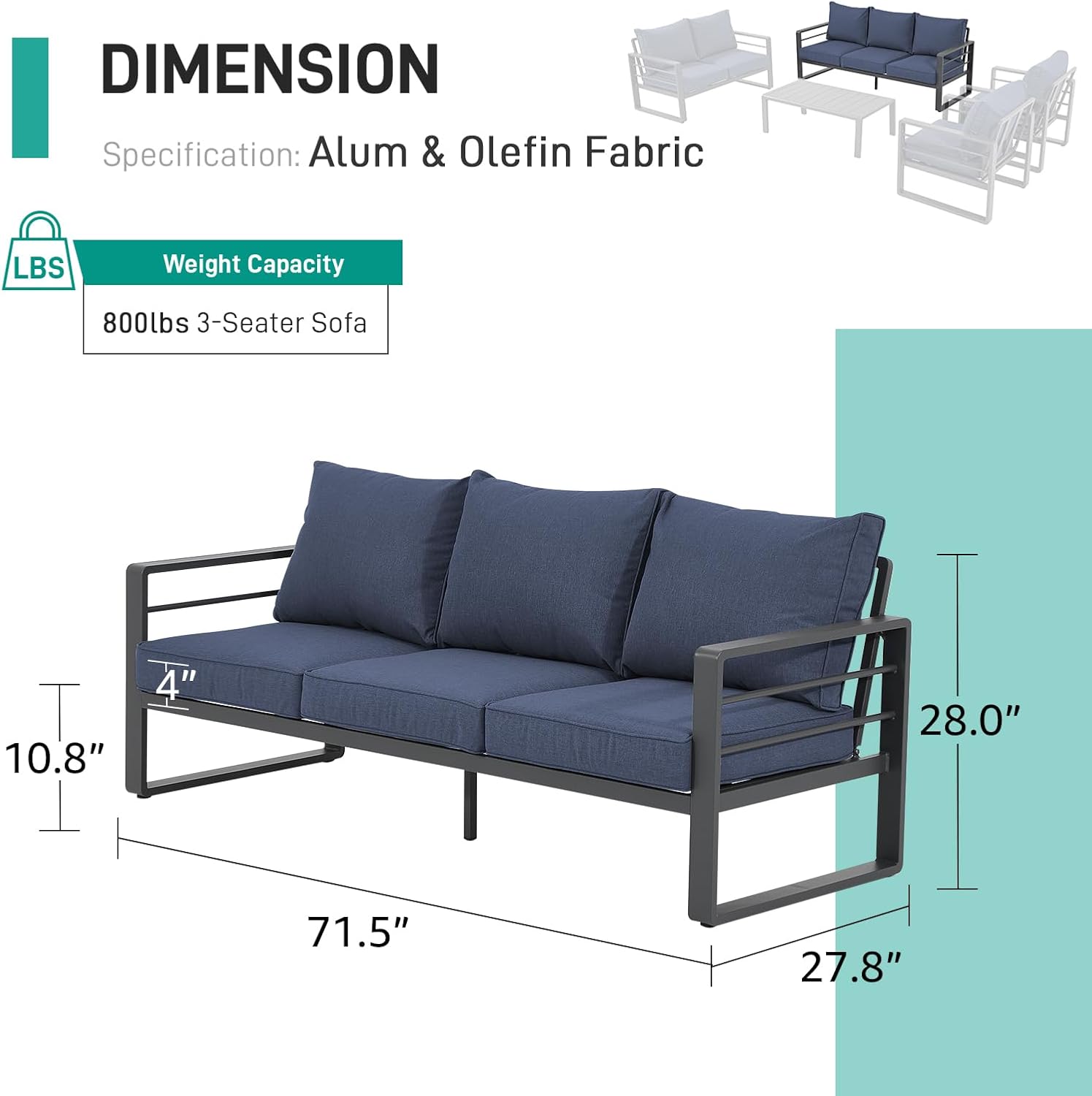 Patiorama Aluminum Patio Furniture Set, Outdoor Patio 3-Seater Sofa, 3 Seats Couch, All Weather Dark Grey Metal Chair with Olefin Cushion, Deep Seating, 800 lbs Capacity, Deck, Garden-Blue Cushion