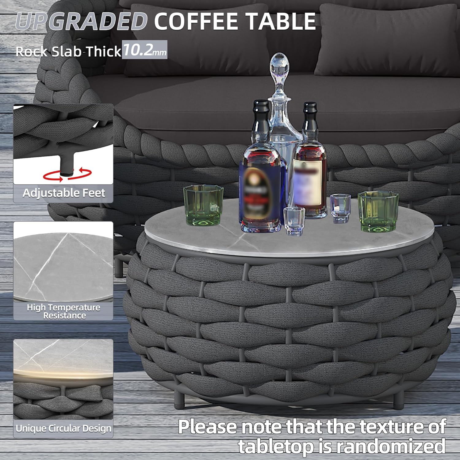 - Sturdy & Durable: This outdoor sectional sofa sets with high quality aluminum alloy,no rust,no deformation,hand woven textilene rope are strong enough to withstand all weather variations.Outdoor patio furniture set cushions balance well with sturdy frame