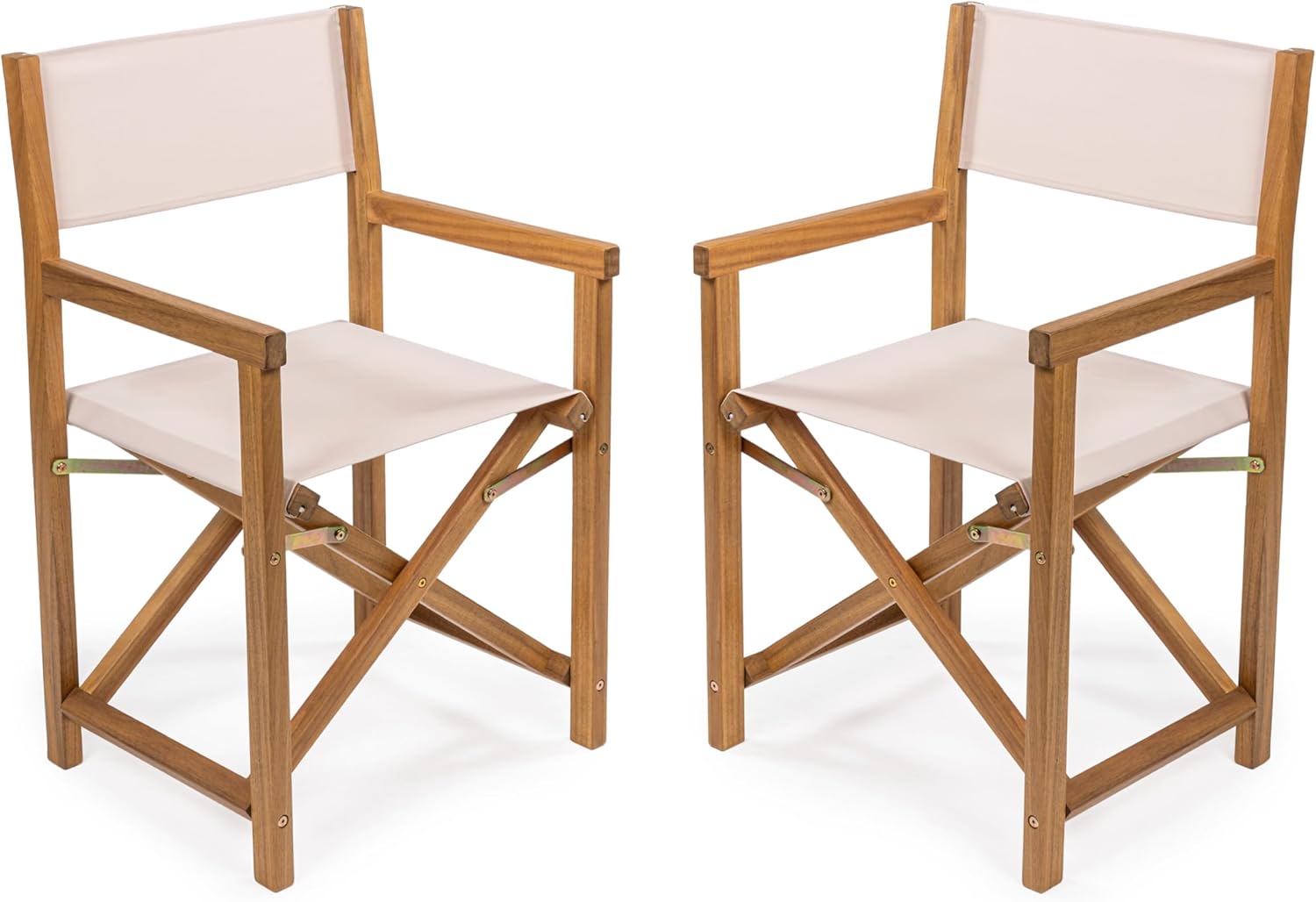 JONATHAN Y DRC1000B-SET2 Cukor Classic Vintage Outdoor Acacia Wood Folding Director Chair with Canvas Seat Classic, Vintage, Mid-Century, Modern, Traditional, Coastal, Beige/Teak Brown (Set of 2)