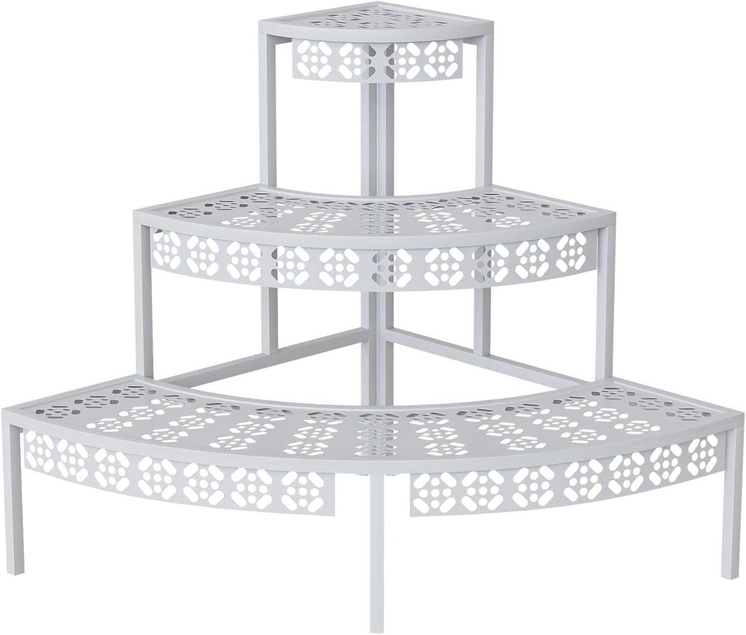 3 Tier Plant Stand Semi-Circular Flower Pot Organizer Rack Quarter Round Plant Display Holder Outdoor Storage Shelves Metal Corner Shelf Planter Shelving Ladder Plant Stand for Indoor Use(White)