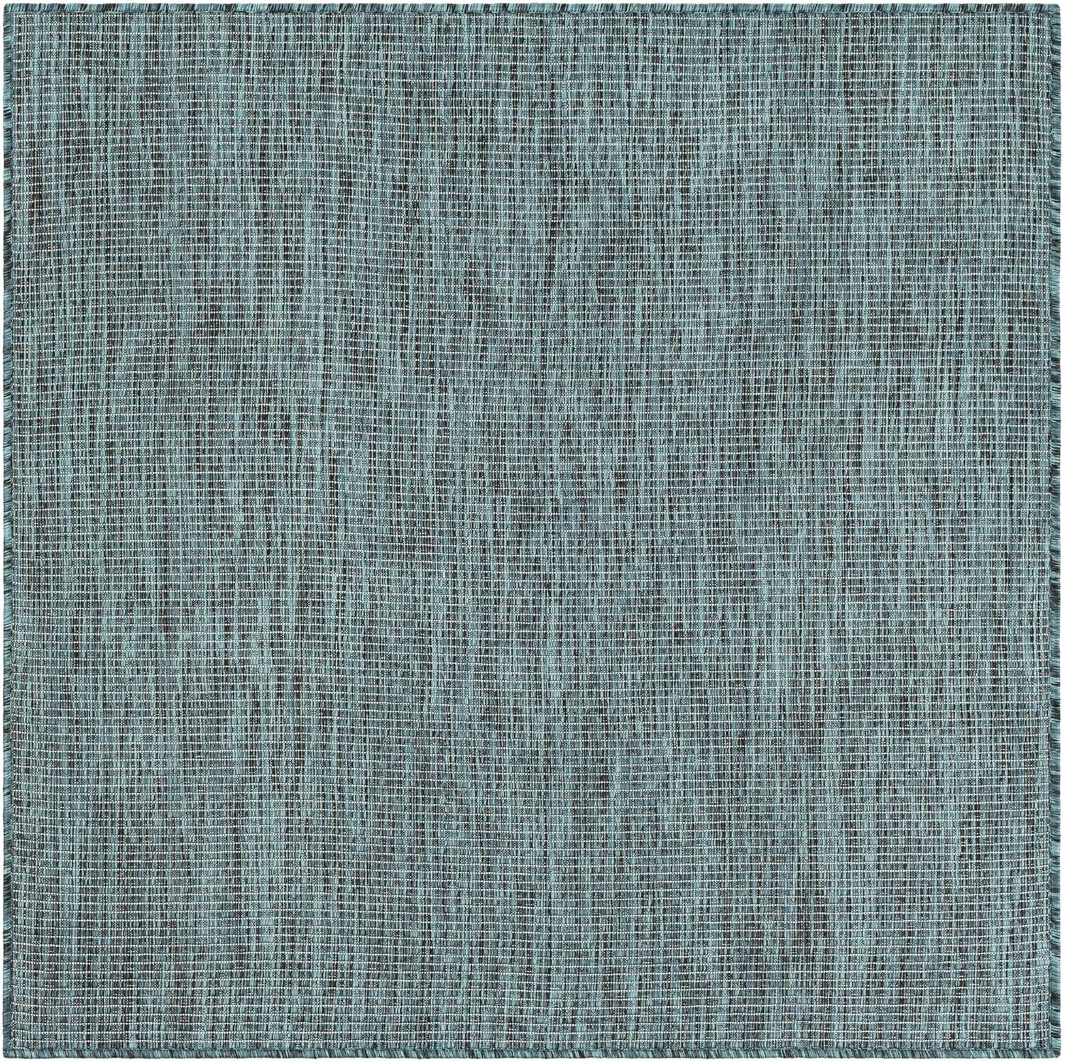 Unique Loom Outdoor Solid Collection Area Rug (4' 1" Square Teal/Navy Blue)