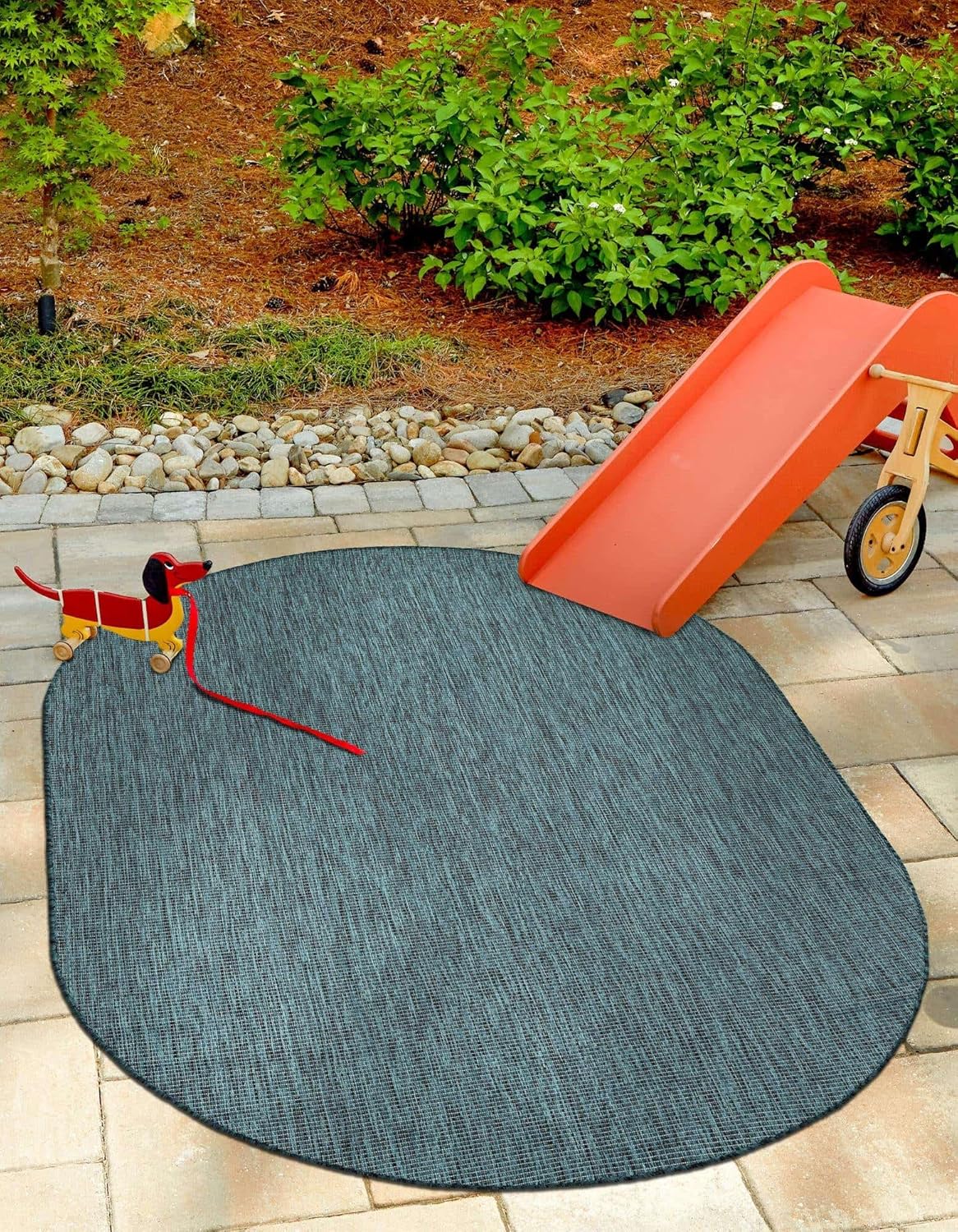 Unique Loom Outdoor Solid Collection Area Rug (7' 10" x 10' Oval Teal/Navy Blue)