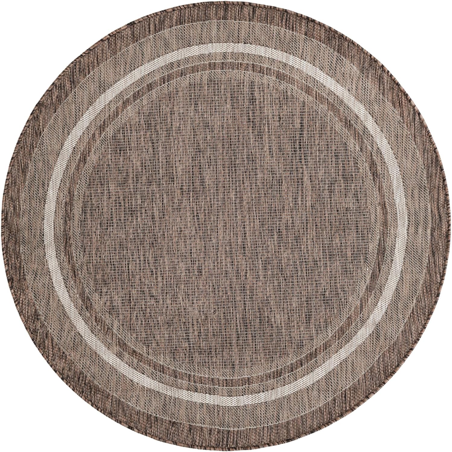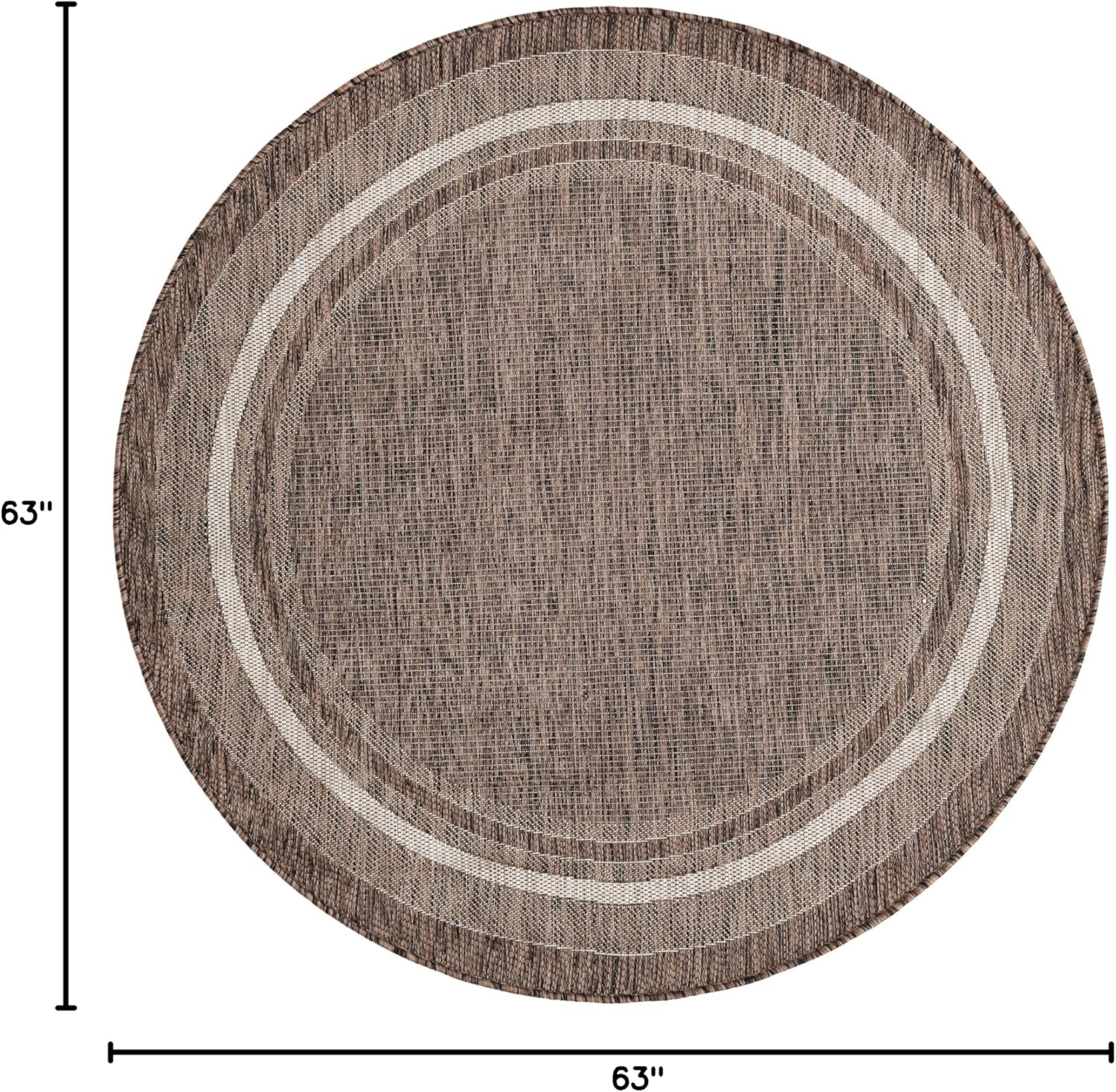 Unique Loom Outdoor Border Collection Area Rug - Soft Border (5' 3" Round Brown/Ivory)