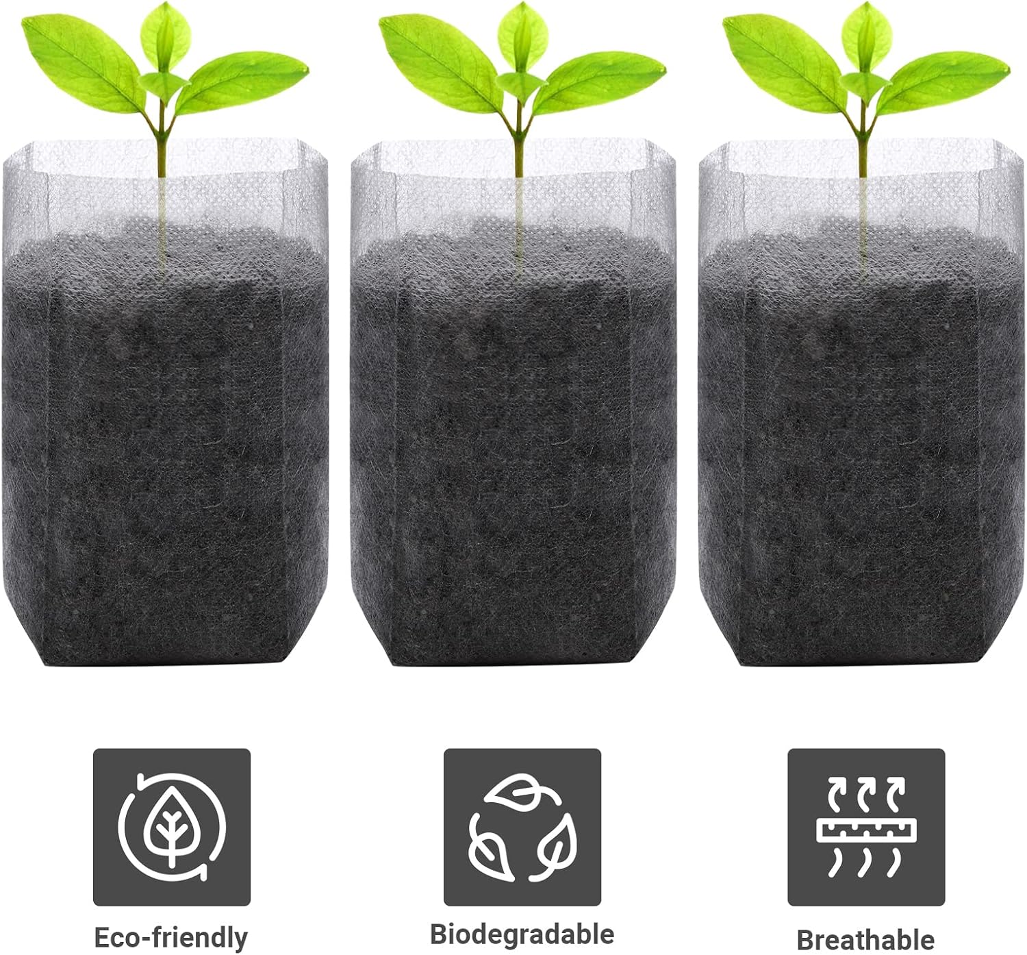 - 【HIGH SEEDING SURVIVAL RATE】The biodegradable plant bags has a small hole design, good drainage, air permeability, nutrient and moisture can be absorbed easily; biodegradable, don't need to remove the bag when transplanting, increase seedling survival rate.