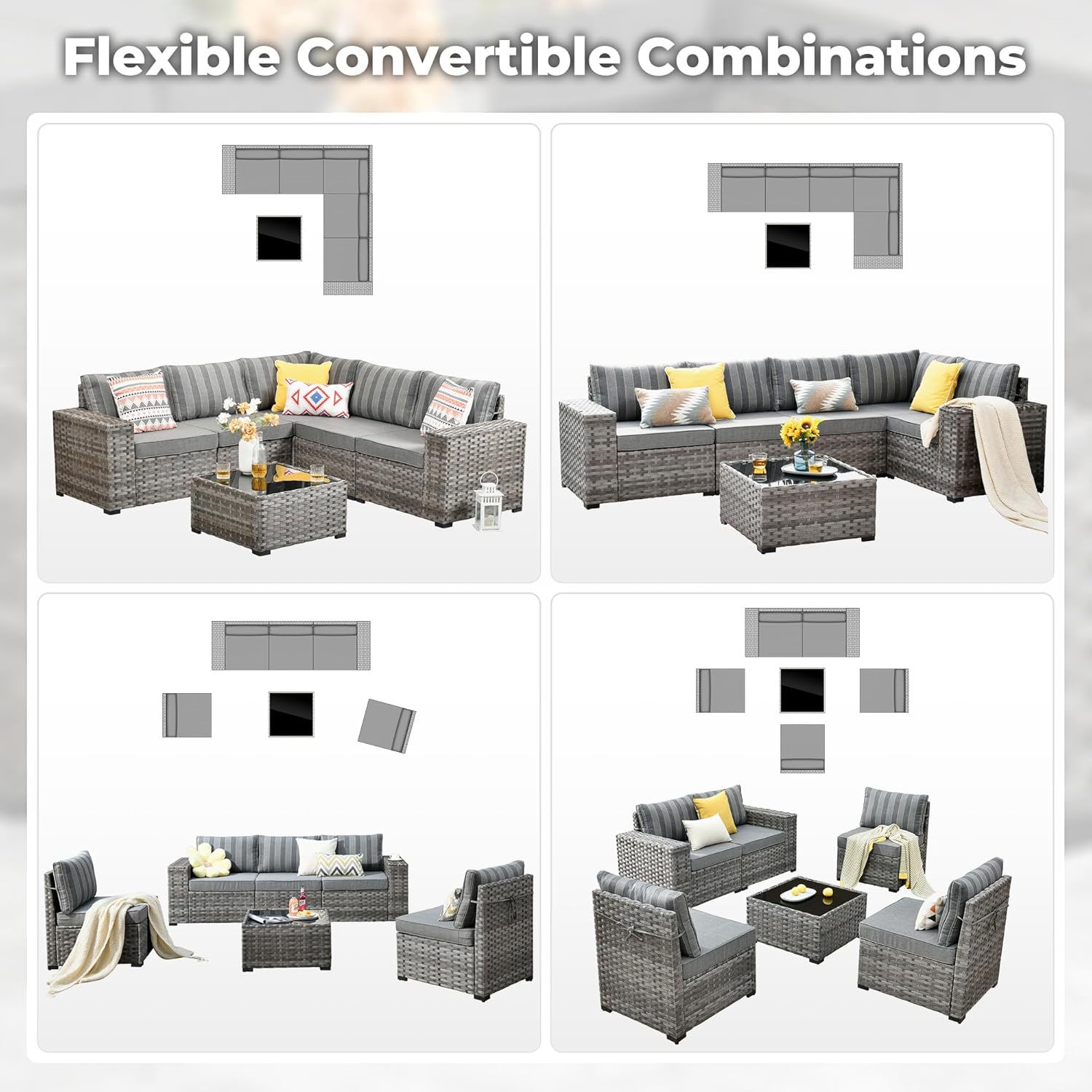 - Modular Combination: Outdoor sectional sofa set can be separated into 5 single seats, which can be freely combined with the included connecting clips to create the outdoor seating arrangement you want to fit into a variety of spaces
