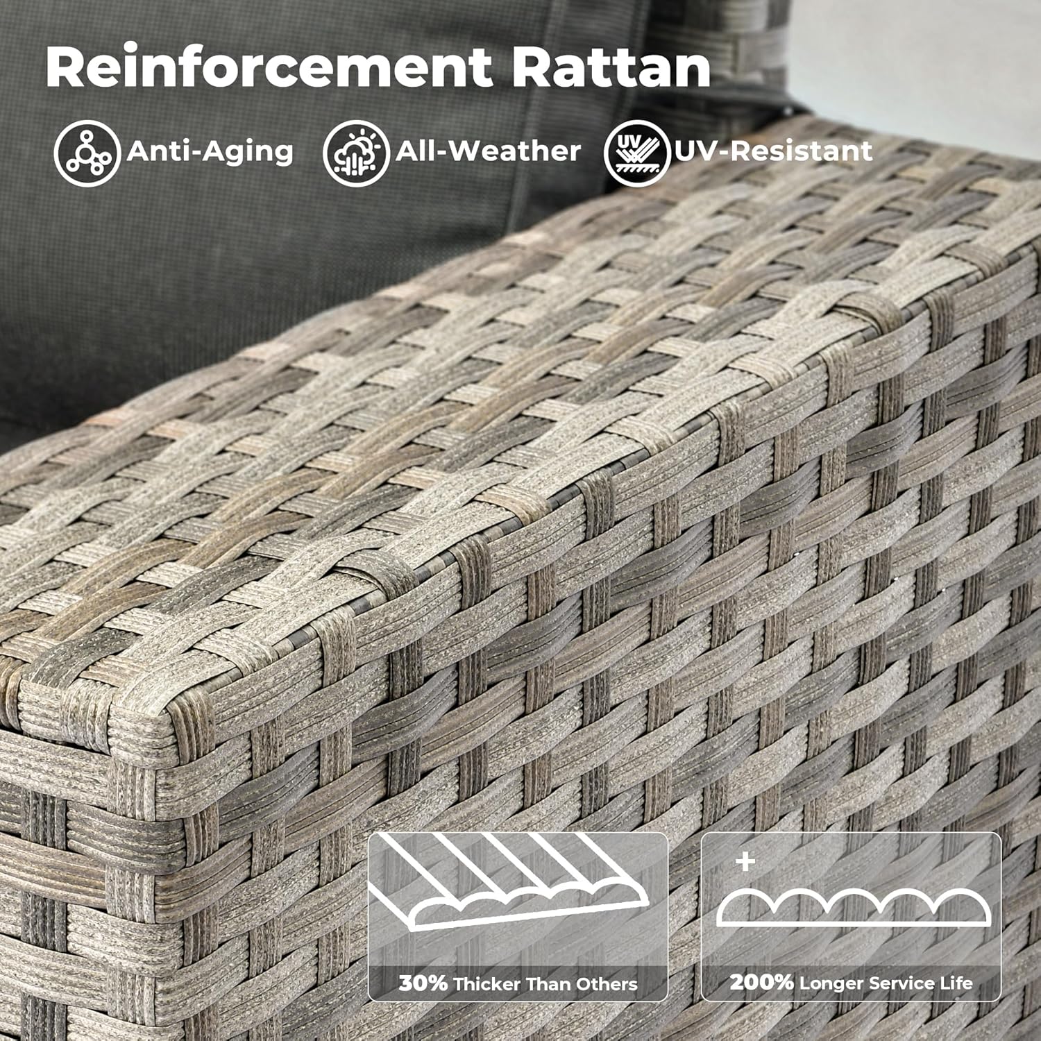 - All-weather Wicker Rattan: Our outdoor sofa sets have very durable PE wicker rattan for all-weather use and a natural texture with good coloring. The high-quality patio seating made of powder coated steel frame ensures good strength and stability