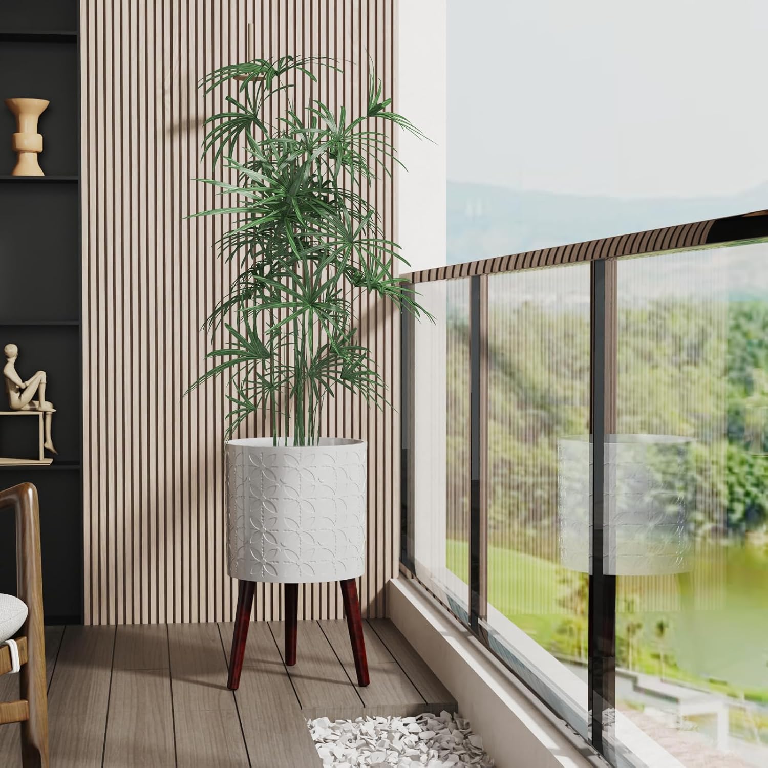 - Wooden leg flower pot: Three high-quality oak legs are very easy to install, just screw the wooden legs into the holes, no tools are required to complete.The triangular structure is more stable and can withstand up to 100 pounds.