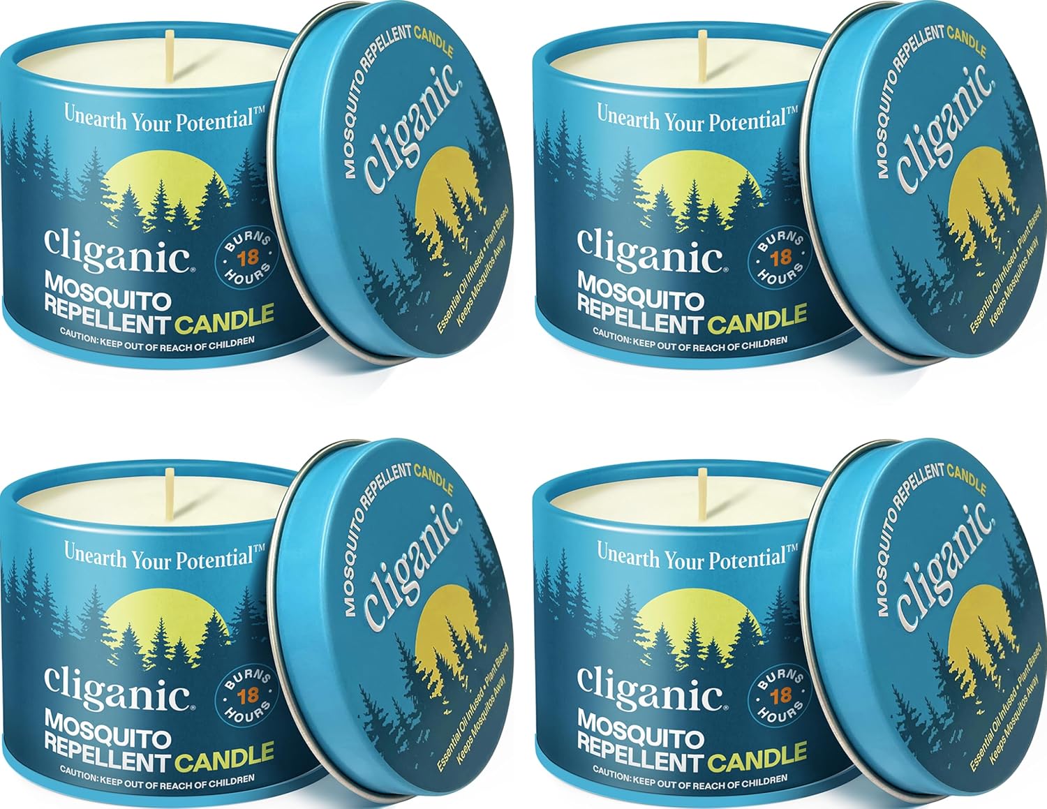 Cliganic Natural Mosquito Repellent Candle (Pack of 4) | Citronella, DEET Free, Essential Oil Infused for Outdoor, Camping | Burns 18 Hours
