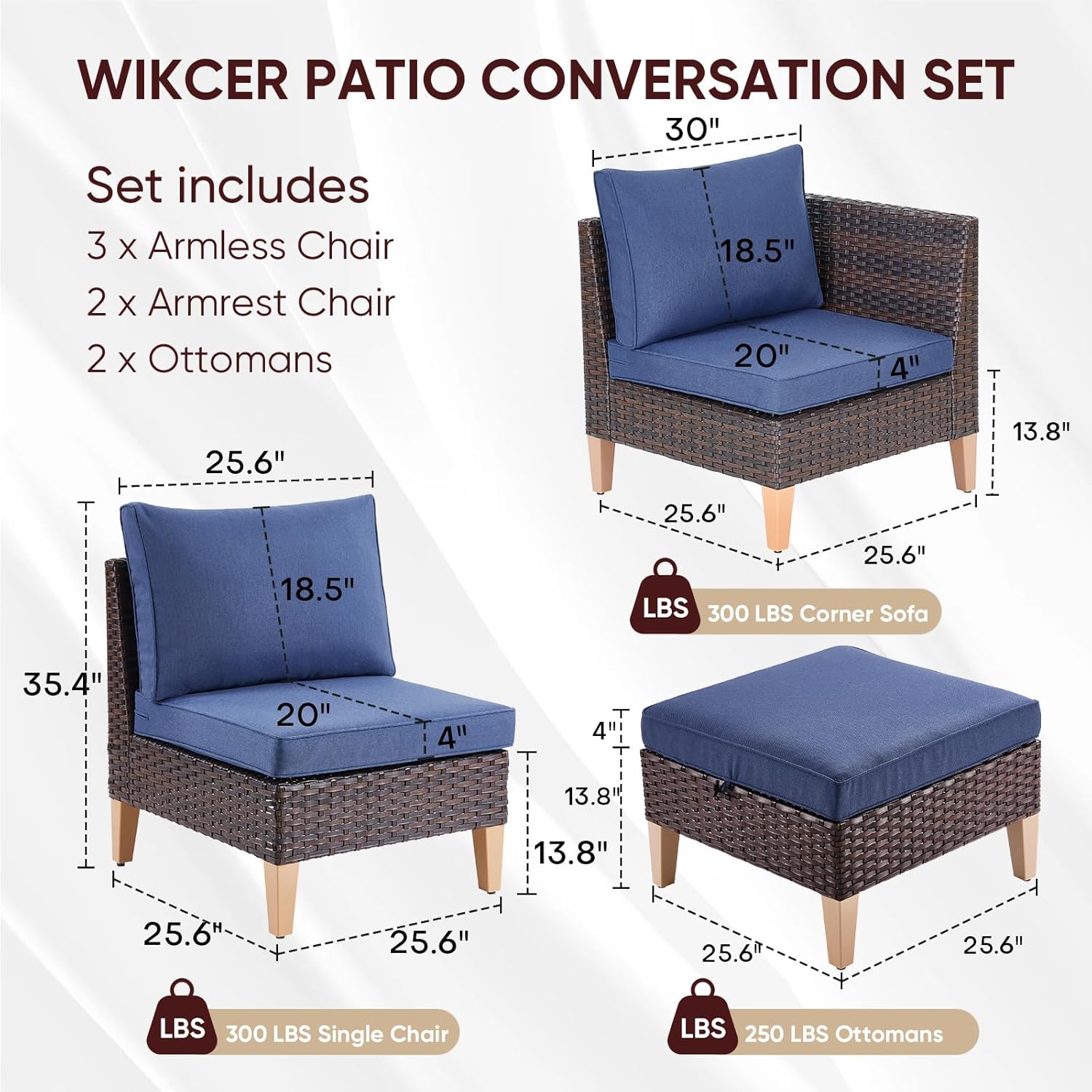 - Durable Sturdy Construction:All made with anti-rust powder-coated metal frame and high-quality Handwoven PE wicker which makes this patio furniture set resistant to UV and all weather,The upgrated trapezoidal feet provides strong support,with the non-slip plug, it will help you to avoid scratches on the floor when you move the furniture around.