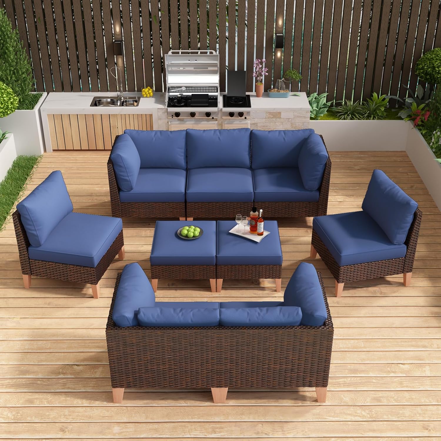 - Free Combination:Our patio furniture set includes individual chairs, corner chairs, and curved double seat sofas and ottomans. you can freely combine these products to meet your needs and space size.Any quality problem please contact us for replacement.