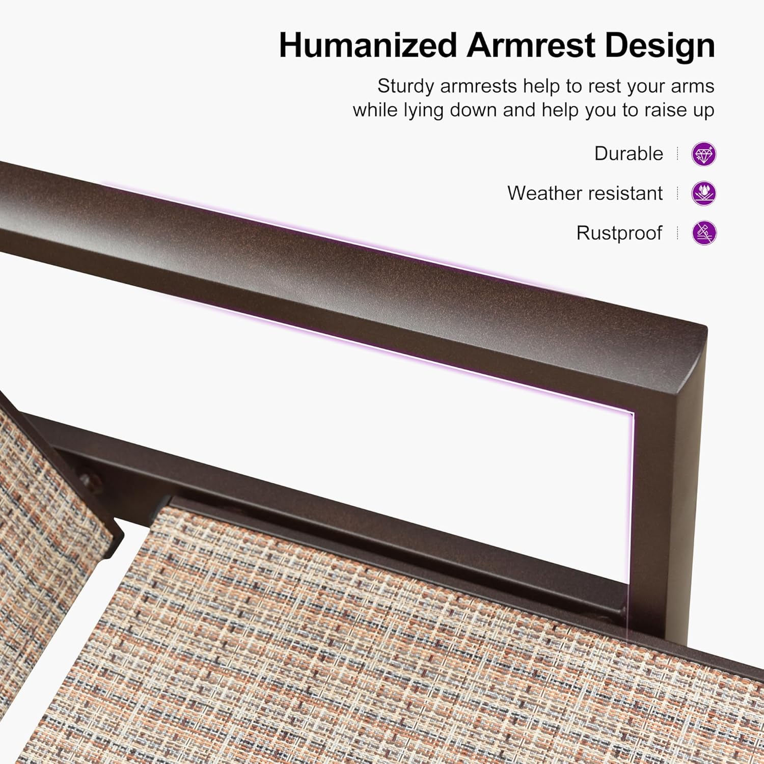 - HUMANIZED ARMREST: Feature two 20.6 "height humanized armrests, the lounge chairs for outside can relax your arms while lying down without pressure and get out of easily.