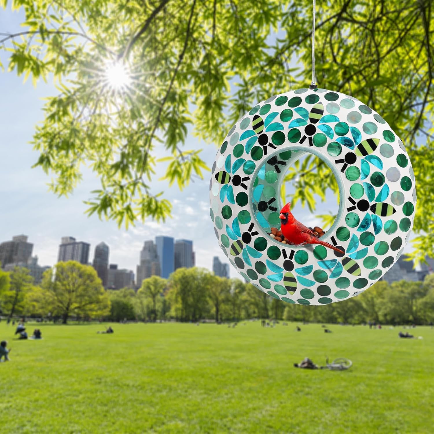 - Mosaic Bird Feeder: Has a colorful mosaic glass design which reflects beautiful lights in the sun and attracts birds to feed, making your home and garden more lively