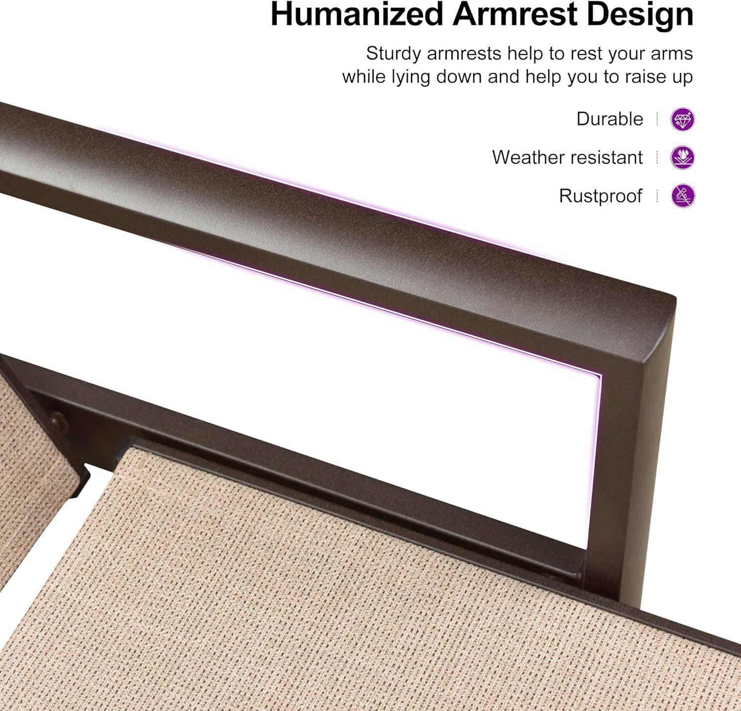 - HUMANIZED ARMREST: Feature two 20.6 "height humanized armrests, the lounge chairs for outside can relax your arms while lying down without pressure and get out of easily.