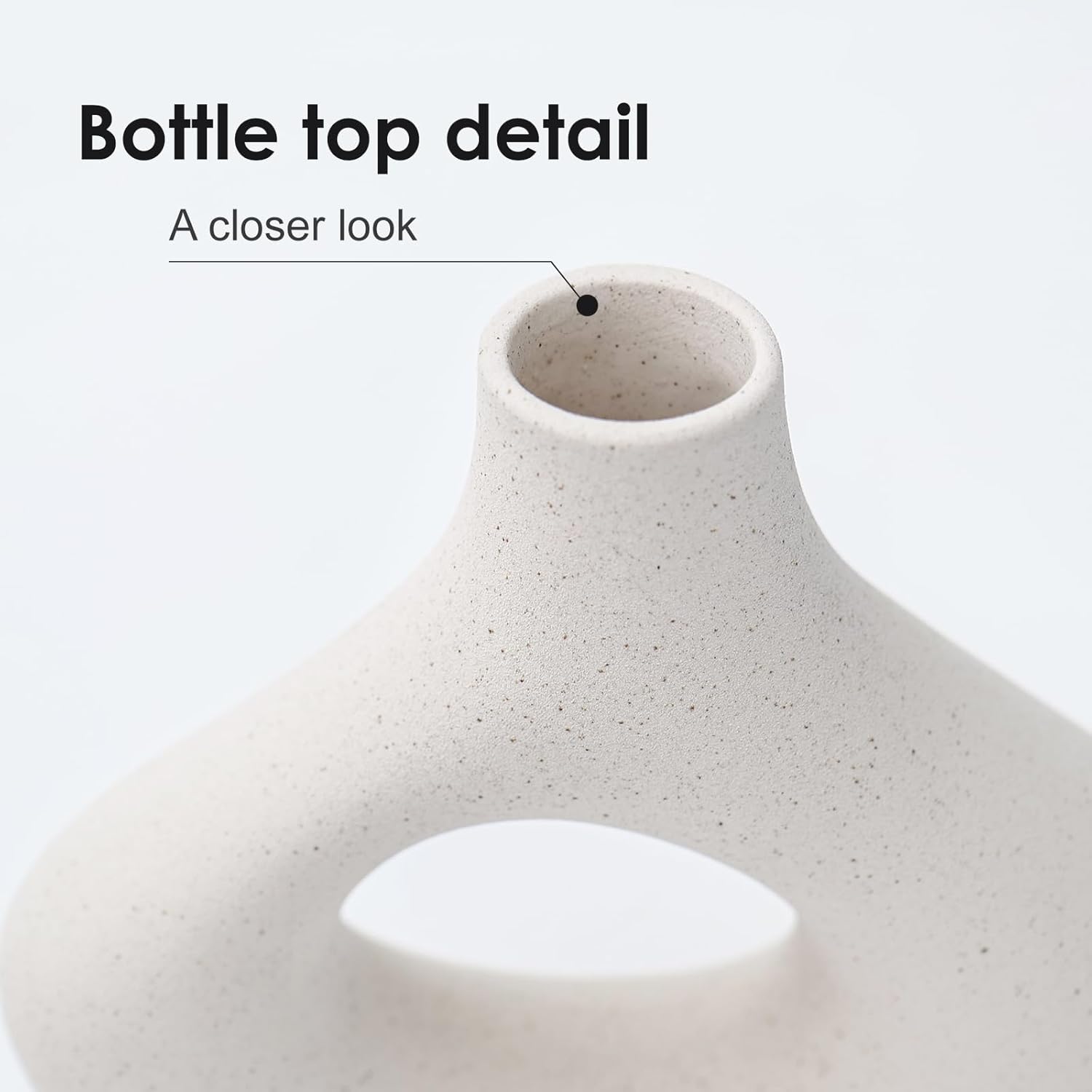 CEMABT Beige Ceramic Vase Set of 2 for Modern Minimalist Bohemian Decor,Round Matte Donut Vases for Pampas Grass-Perfect for Living Room, Dining Table, Office Bedroom Shelf Decor Entryway, Console…