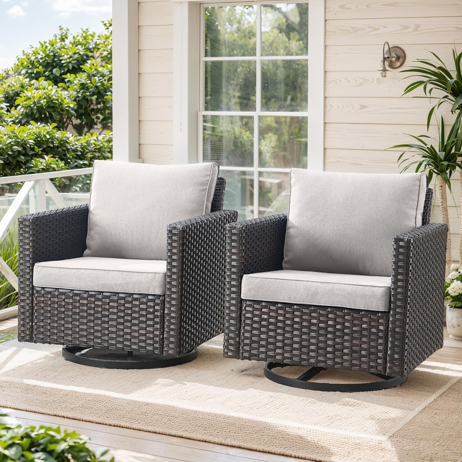 HUMMUH Patio Swivel Chairs Set of 2,PE Wicker Outdoor Rocker Chairs Bistro Set Porch Balcony Furniture with Cushions