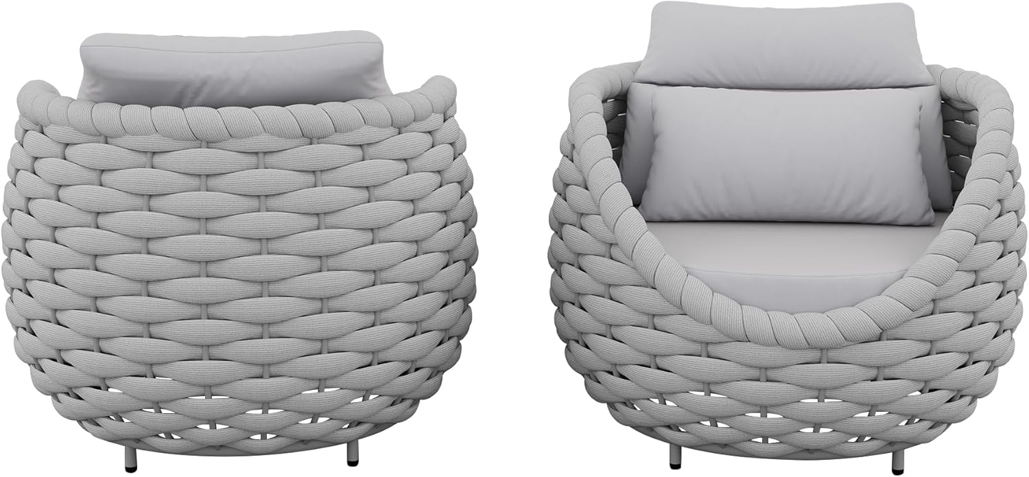 - Sturdy & Durable:TWT outdoor chairs set of 2 with high quality aluminum alloy,no rust,no deformation,hand woven polyester rope are strong enough to withstand all weather variations.Outdoor sofa cushions balance well with sturdy frame
