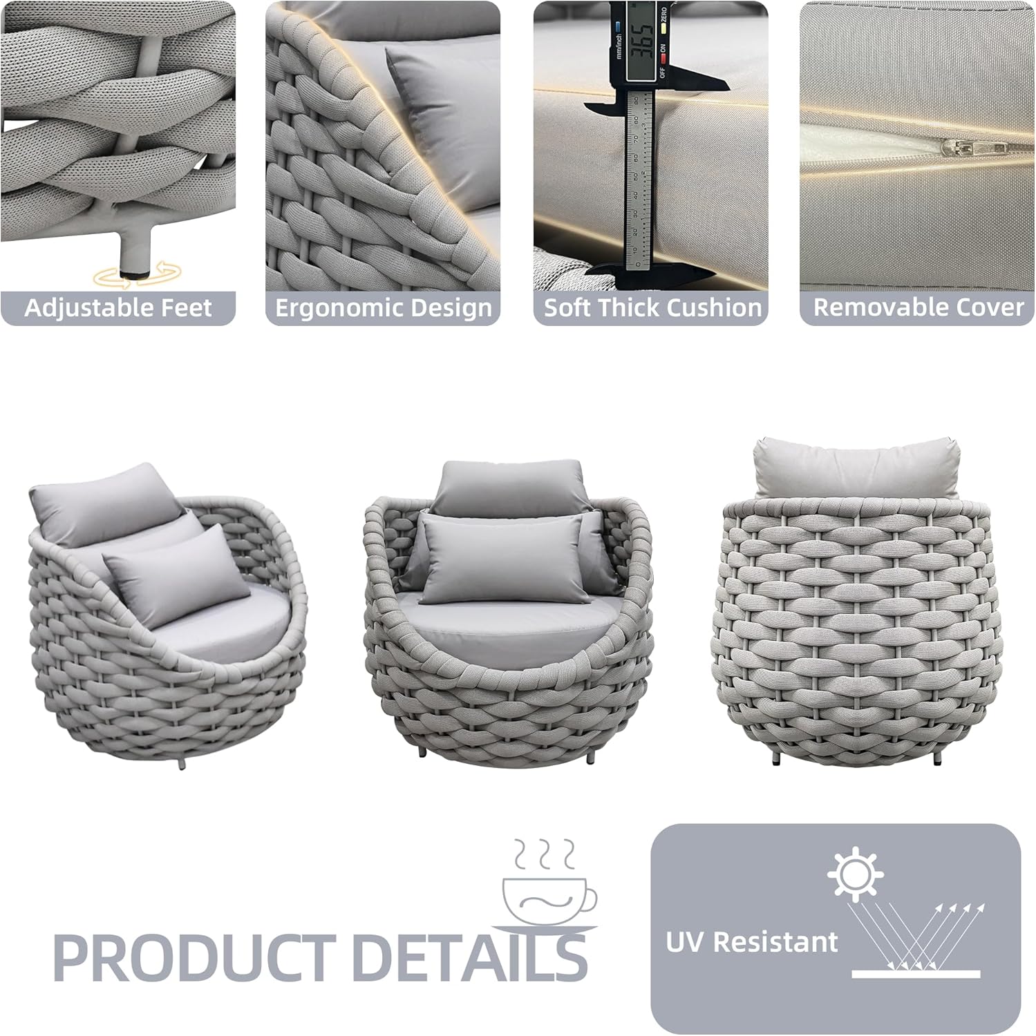 - Soft & Comfortable: Outdoor patio furniture has 3.7" thick seat cushions that are upholstered by water-resistant and UV-protective polyester fabric for ergonomic optimal comfort.Cover of cushions can be removeable and washable by invisible zipper as well