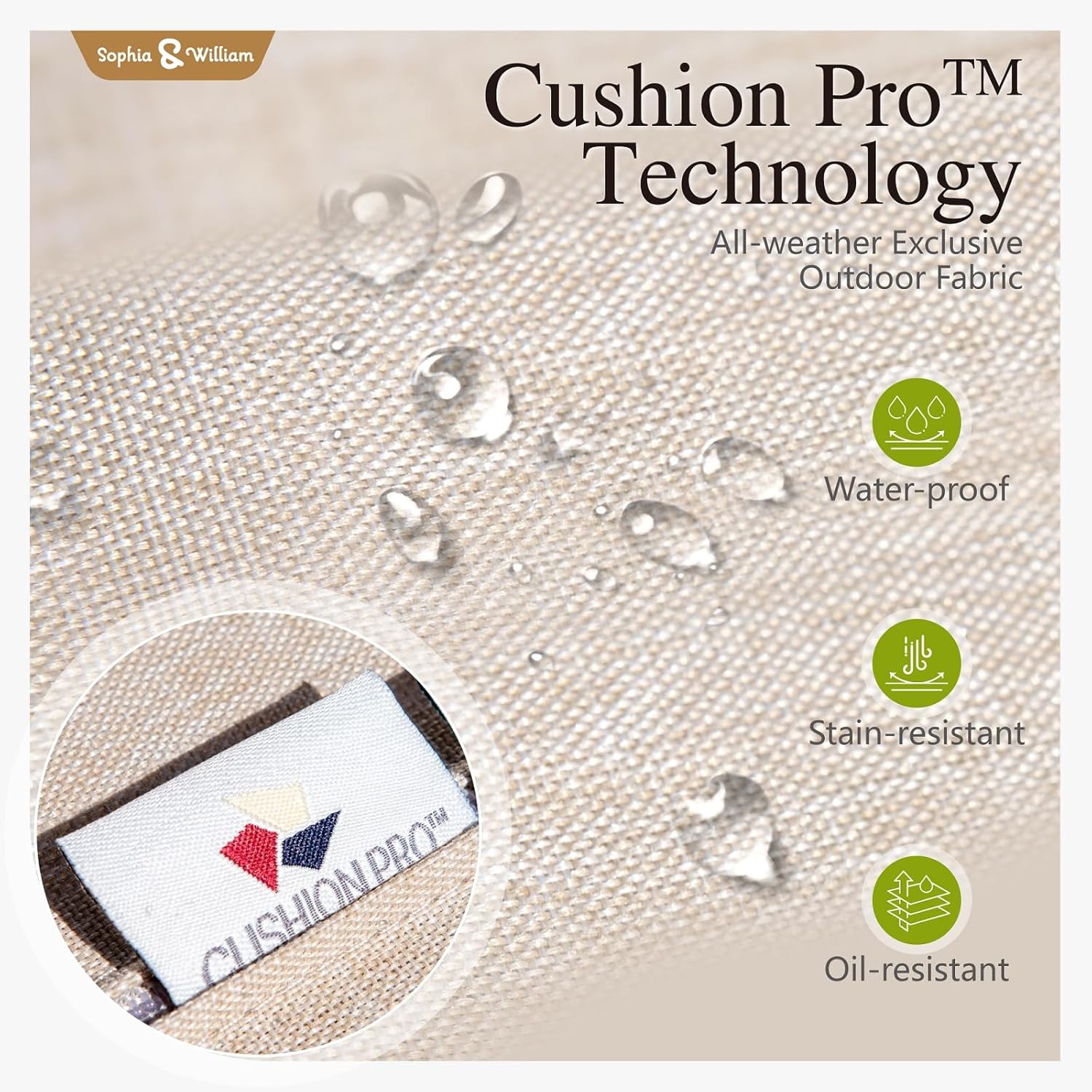 - LUXURIOUS COMFORT & ALL WEATHER USE: Constructed from allweather hand woven rattan wicker and rustproof steel frame. Sofa cushions are made of patent CUSHION PRO technology fabric which has excellent water resistant, oil-release, and stain-resistant properties, ensure that youll be able to enjoy your set for many seasons to come. Its 4-inch thick cushions and spacious seating area provide a perfect balance of softness and support, allowing you to relax for hours