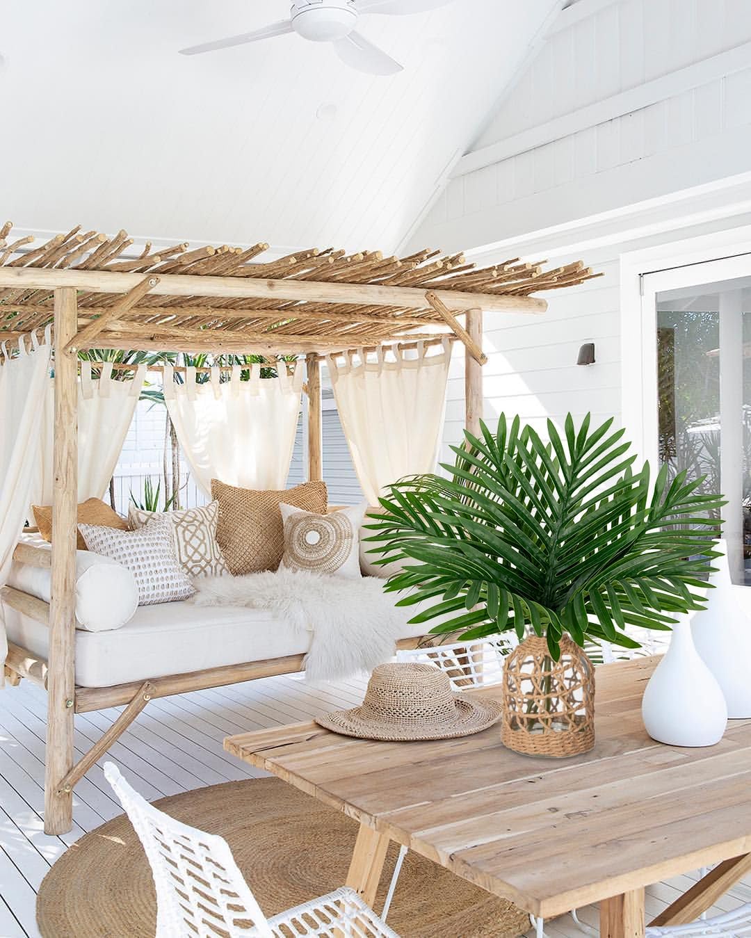 - [Realistic Tropical Leaves] -Faux palm leaves are made from soft, real touch plastic and flexible fabric to mimic the natural touch feel and shape of real leaves, this realistic fake plants décor is non-toxic and durable.