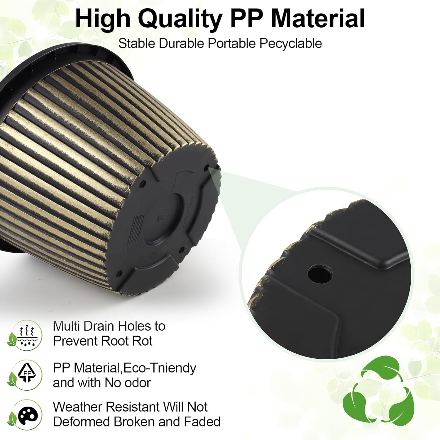 - 【Perfect Size & sturdy Material】Top diameter: 12 inch, bottom diameter: 7.8 inch, height: 8.2 inch, capacity: 2.6 gallon. Large plastic plant pots are made of recyclable polypropylene resin which is lightweight but sturdy, not easy crack. These indoor outdoor planters are UV and weather resistant. 12 inch flower pot is perfect for planting medium to large sized plants.