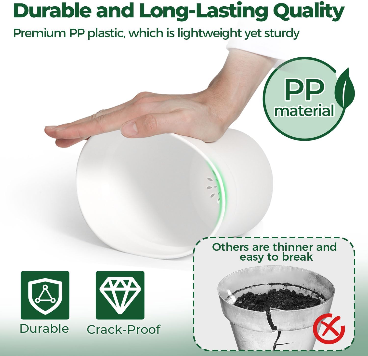 - 🌱【Durable & Lightweight Plastic Pots】T4U flower pots Made from premium plastic, these plastic pots are lightweight yet tough enough to withstand drops and outdoor elements, offering long-lasting support for your plants year-round