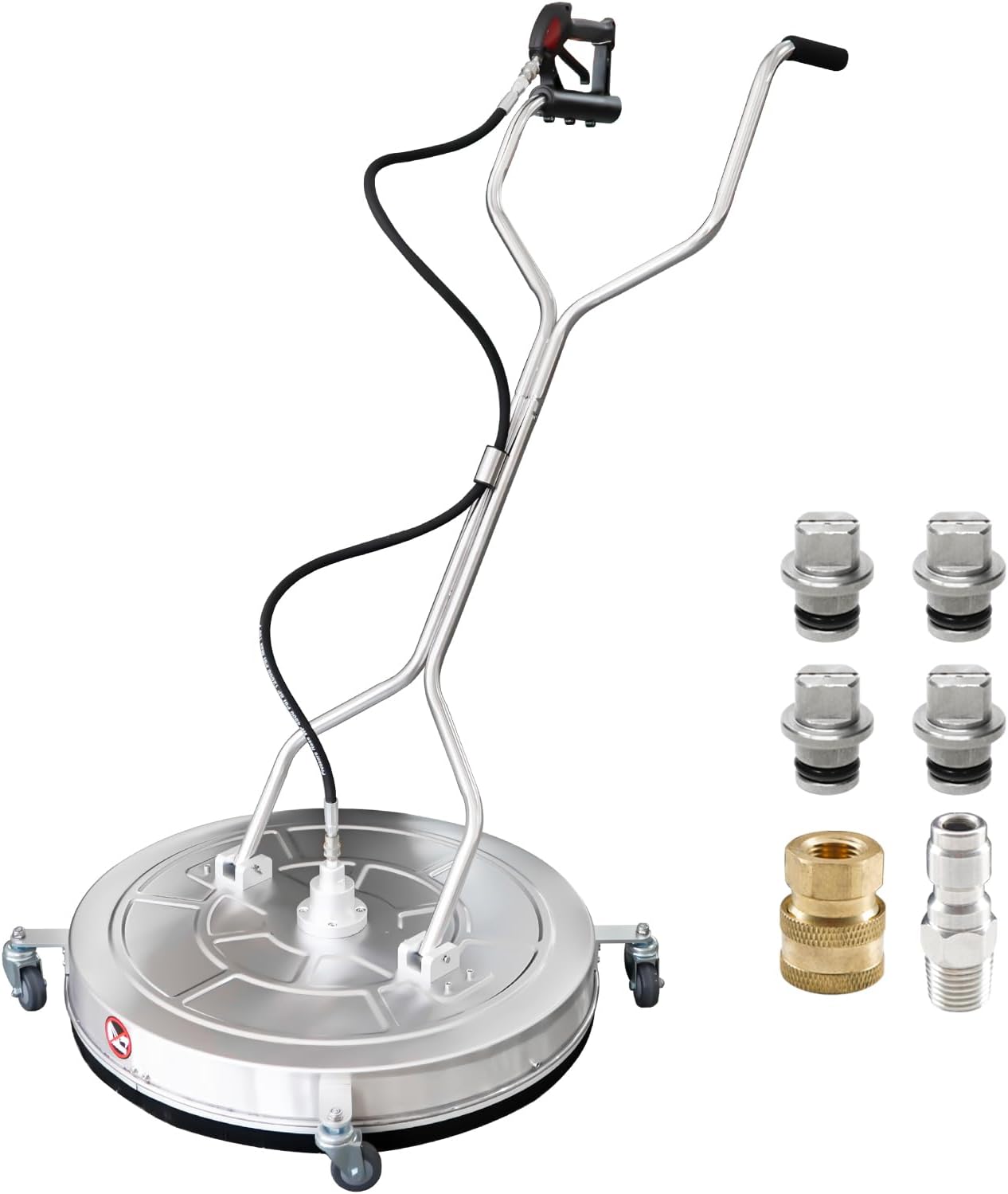 JANZ 30'' Pressure Washer Surface Cleaner with 4 Wheels,Dual Handle,Stainless Steel Housing, 2 Hose Adapters and 4 Replacement Nozzle Cores,Ideal for Driveways, Sidewalks,Patios,Decks Cleaning