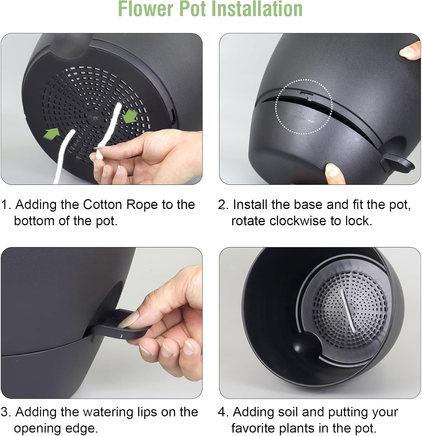 - 【Self Watering Design】 Self watering pots is includes a water reservoir at the bottom of the planter. This flower pots automatically supplies water to your plants as needed by a cotton rope, reducing the frequency of watering and ensuring your plants never go thirsty. The reservoir design also helps maintain a consistent moisture level, fostering optimal growth conditions.