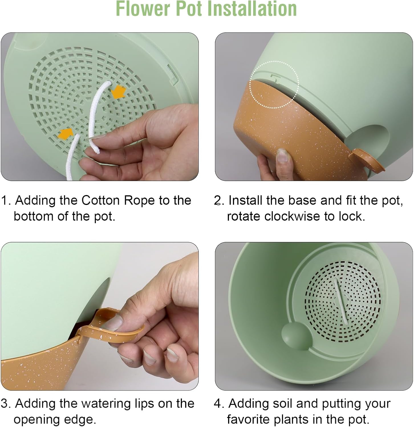 - 【Self Watering Design】 Self watering pots is includes a water reservoir at the bottom of the planter. This flower pots automatically supplies water to your plants as needed by a cotton rope, reducing the frequency of watering and ensuring your plants never go thirsty. The reservoir design also helps maintain a consistent moisture level, fostering optimal growth conditions.