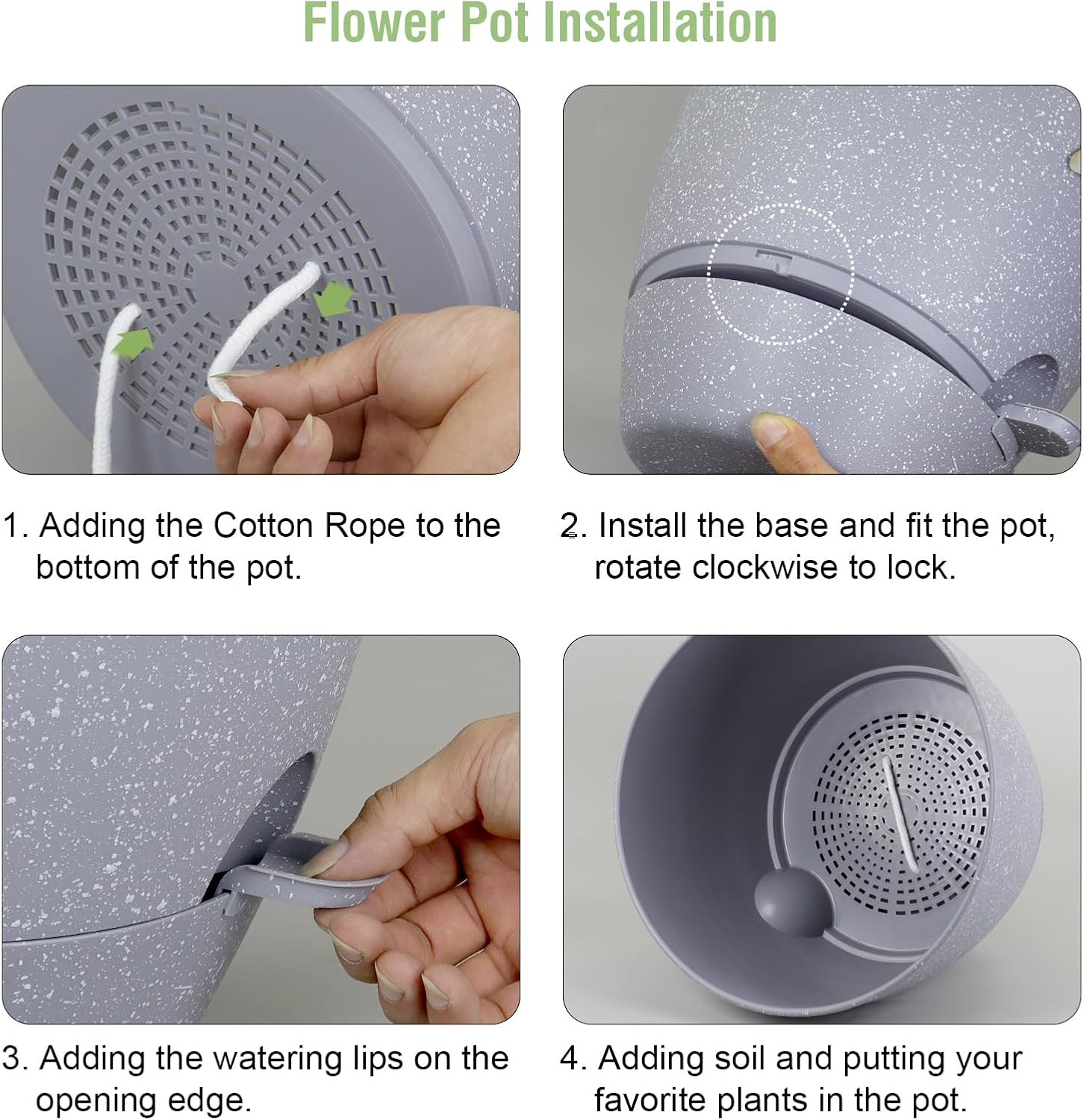 - 【Self Watering Design】 Self watering pots is includes a water reservoir at the bottom of the planter. This flower pots automatically supplies water to your plants as needed by a cotton rope, reducing the frequency of watering and ensuring your plants never go thirsty. The reservoir design also helps maintain a consistent moisture level, fostering optimal growth conditions.