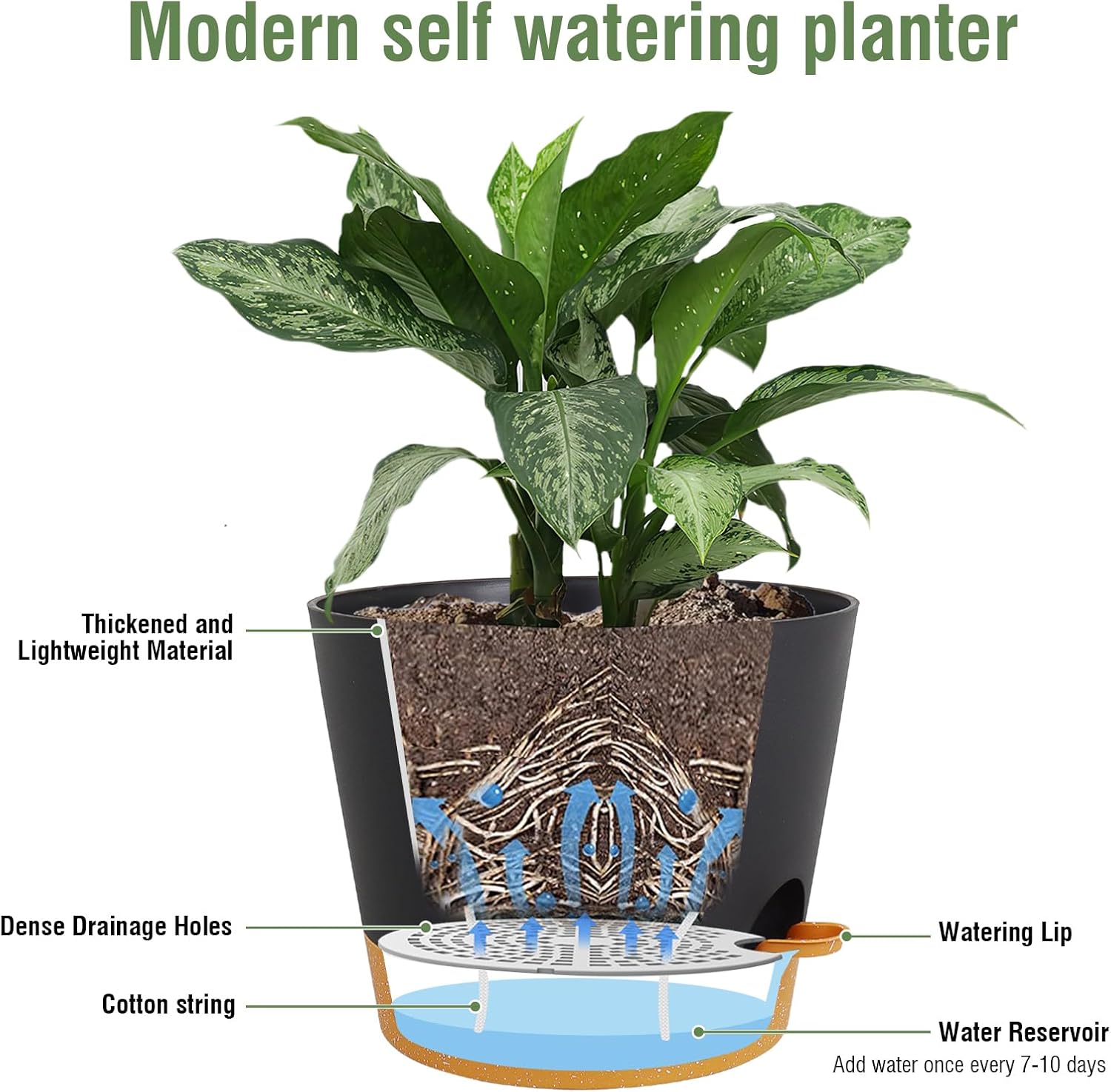 - Special Feature : Drainage Hole, Lightweight, Self Watering