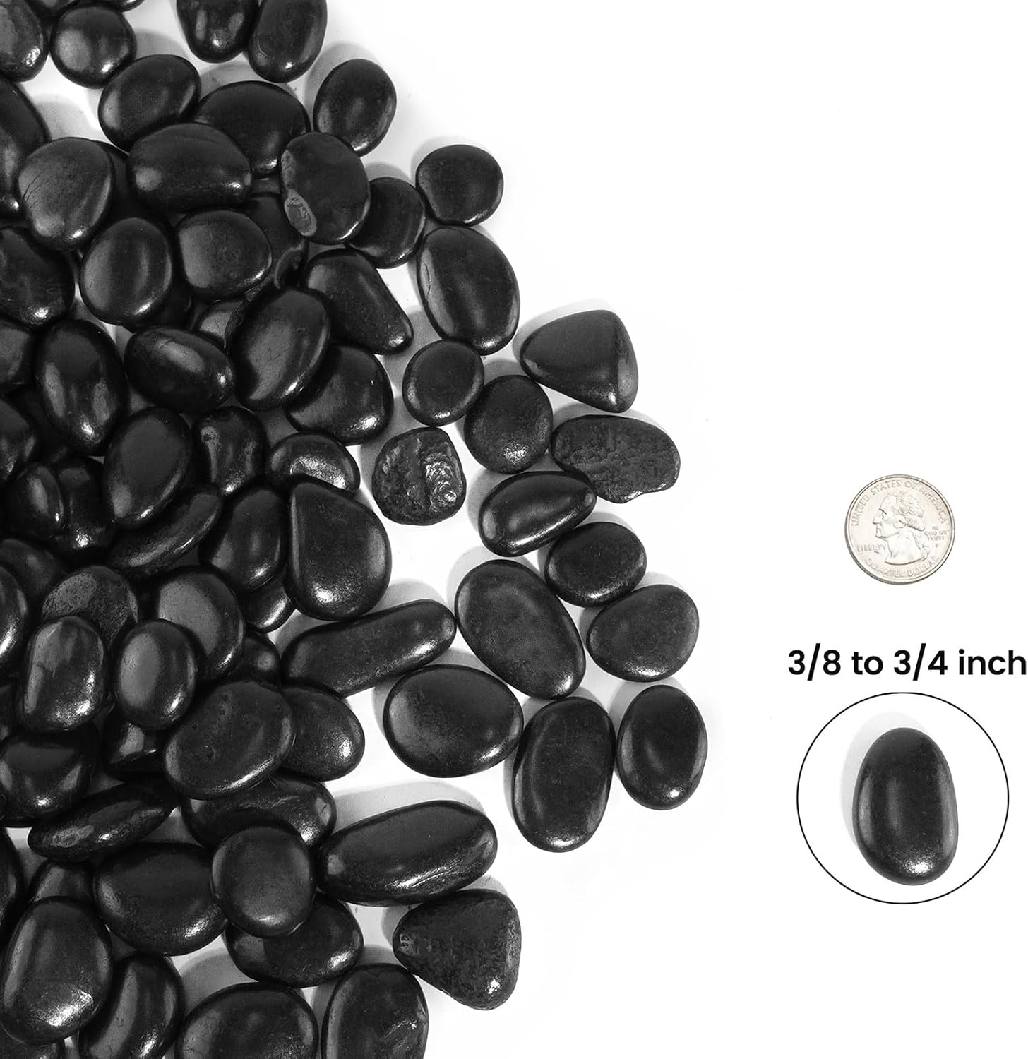 2 LBS River Rocks, StoneCreek, Decorative Garden Stones for Plant Landscaping, Polished Gravel Filler Pebbles for Home Decoration, Vases, Succulents, Flower Beds and Fish Tanks (Black, Medium)