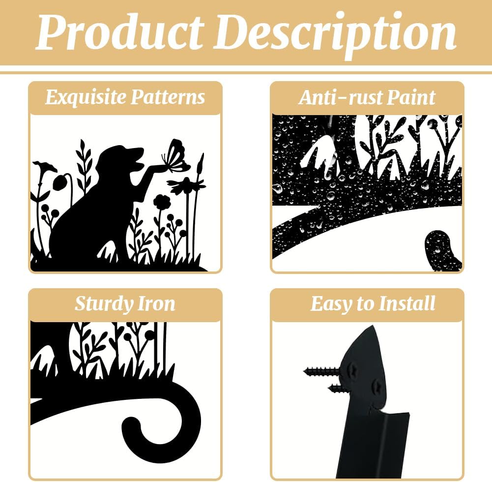 Peacoblue Iron Plant Hangers Holder for Outdoor Indoor Hanging Plants Fern Pots, Lantern, Bird Feeder, Wind Chimes, 12βx14β Dog Weather Resistant Metal Wall Brackets Hooks for Porch, Garden, Home(Dog)