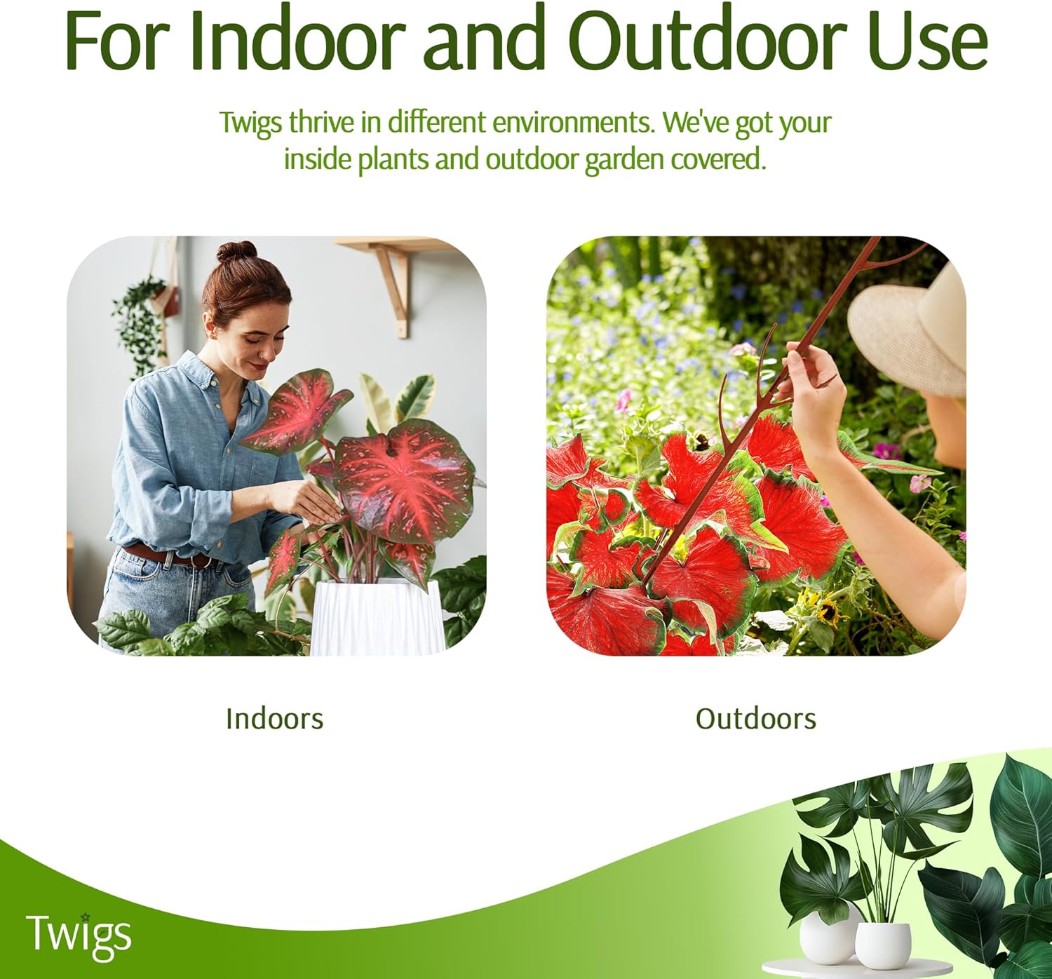 - CONVENIENT PLANT SUPPORT STAKES: Twigs GA Original Twig Plant Stakes provide structure to both indoor and outdoor plants. These plant supports for potted plants deliver convenient support without twist ties or clips, ensuring your plants stay upright and healthy.