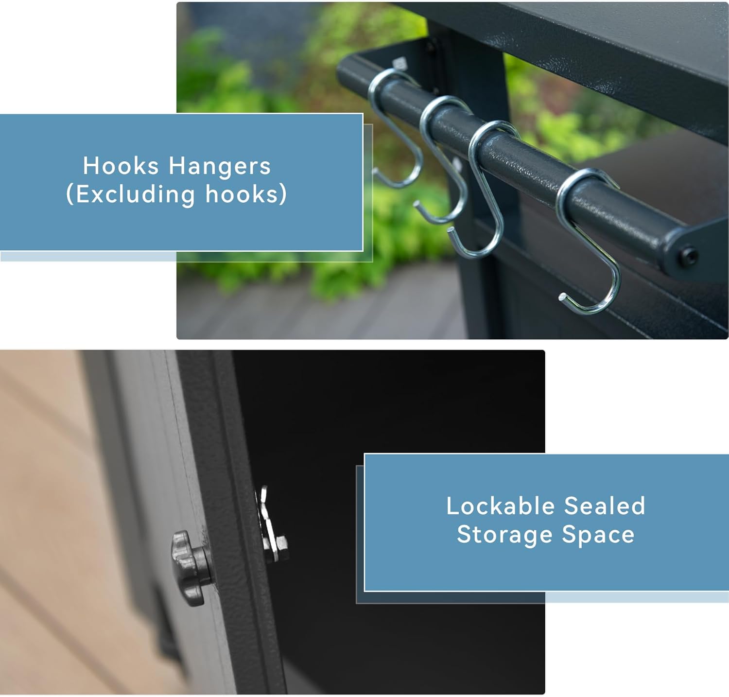 - Durable and Long-lasting -SHPAI outdoor grill cart is made of high-quality galvanized material with a powder-coated surface, offering excellent rust and corrosion resistance for long-term use. The grill table is also safe and non-toxic, ensuring peace of mind while using it. Additionally, its smooth surface makes cleaning easy, and it resists stains and scratches, keeping it looking new