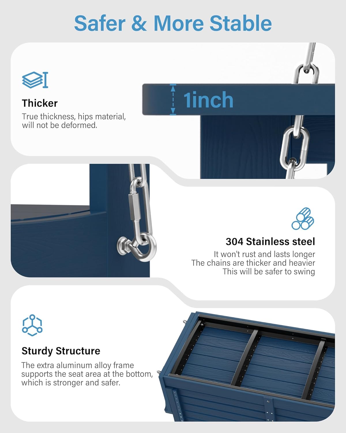 YEFU Hanging Porch Swing Set of 2,2-Seat Patio Swing Bench,All-Weather Swing Chair with Hanging Chains,Look Like Real Wood,for Garden and Courtyard,800LBS Weight Capacity,4FT,Navy Blue