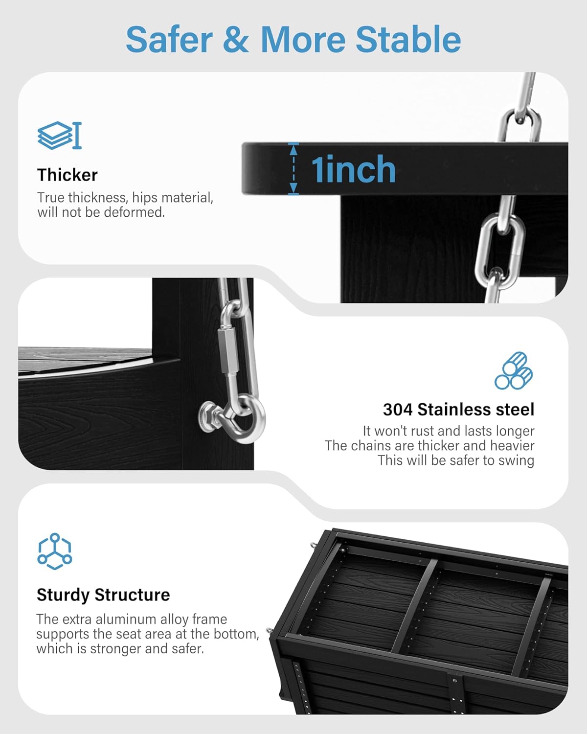 YEFU Hanging Porch Swing Set of 2,2-Seat Patio Swing Bench,All-Weather Swing Chair with Hanging Chains,Look Like Real Wood,for Garden and Courtyard,800LBS Weight Capacity,4FT,Black