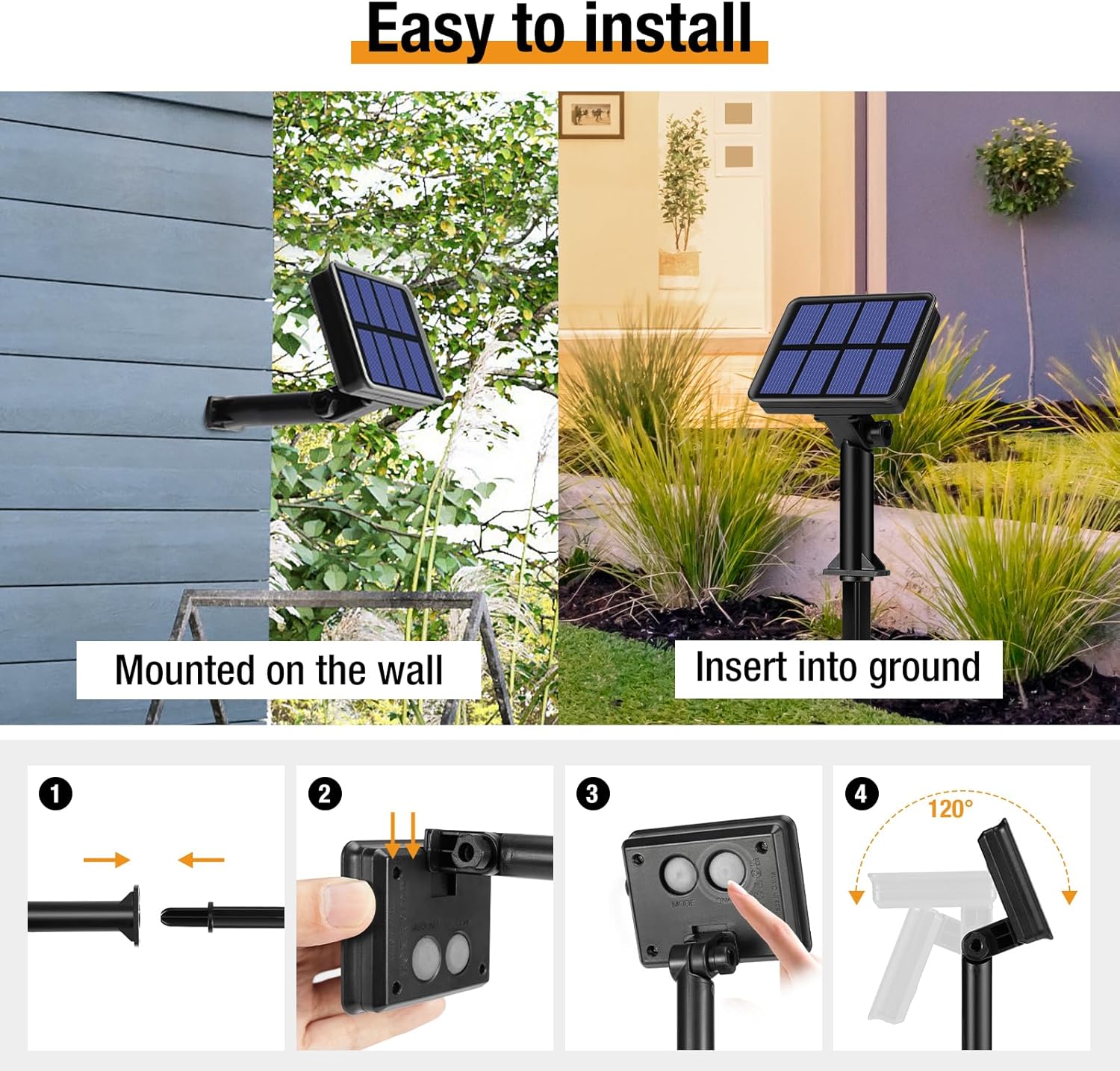 - Waterproof Design for All Weather: Light string and solar panel are IP65 waterproof to withstand any weather, either rain, sun, or snow. Safe for outdoor use, Don't worry about short circuits or bad weather damage (can't soak in water). Emit a white light after rain, romantic and beautify the yard