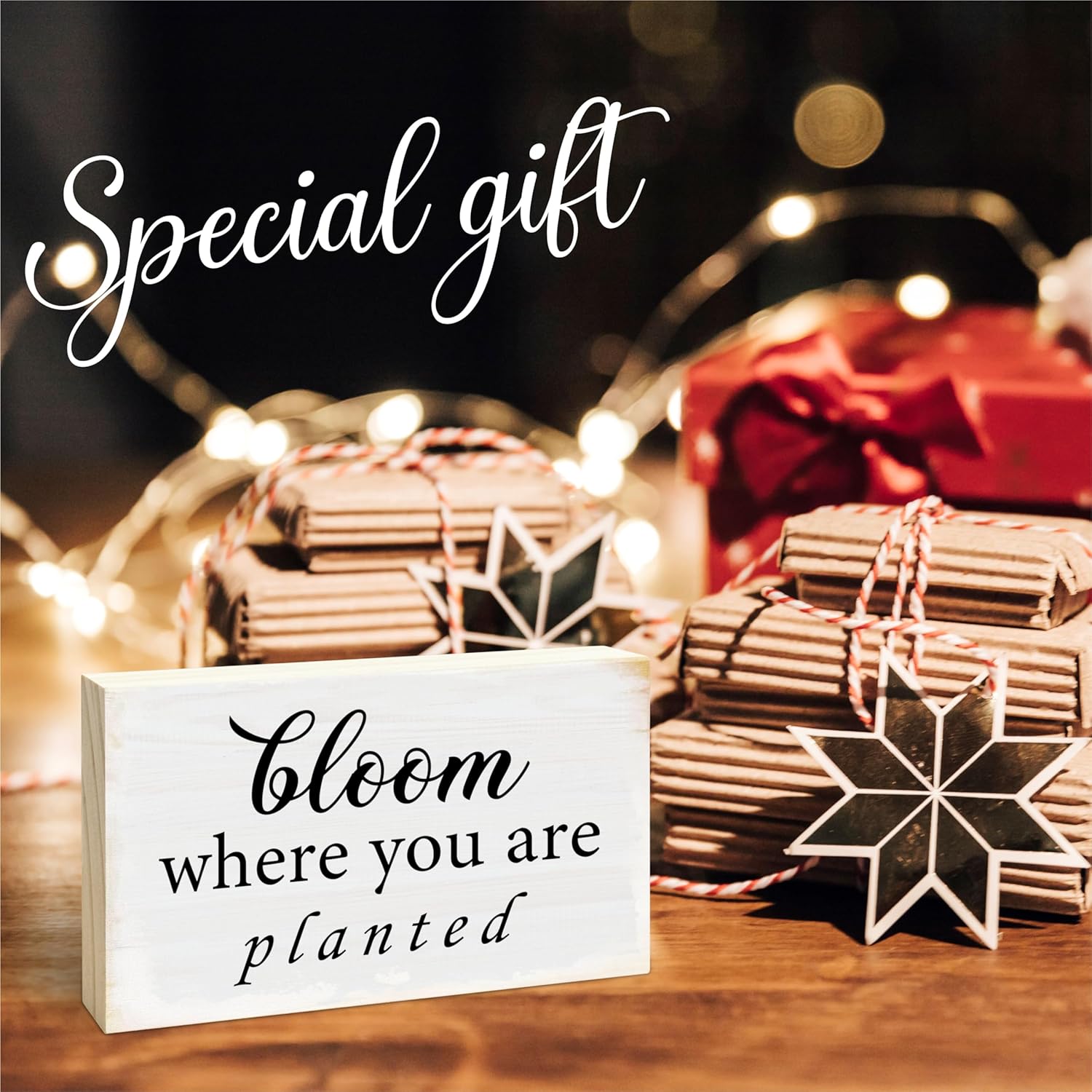 Rustic Wooden Block Sign - Bloom Where You Are Planted - 5"X3" Postive Pine Wood Plaque, Home & Garden Decor, Housewarming Gift For Friends, Desk & Tabletop, Shelf Accessories - A13